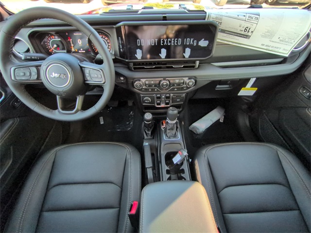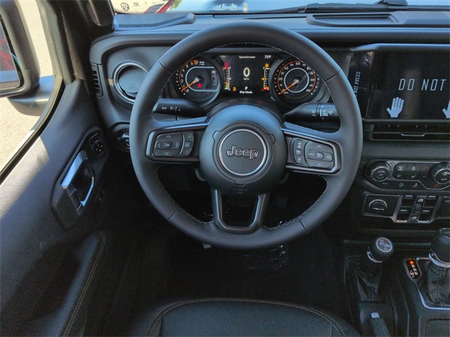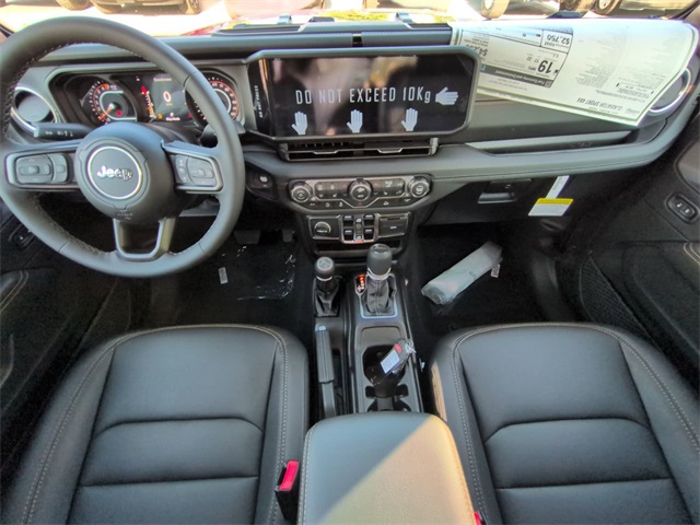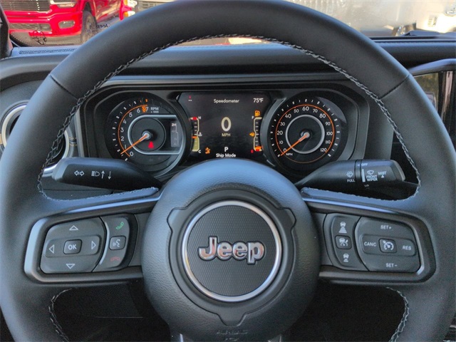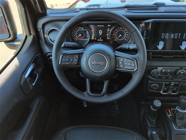 Convenience Group (Corning Gorilla Glass, Daytime Running Lamp System, Emergency/Assistance Call, Front Door Locks 2-Door Passive Entry, Heated Front Seats, Heated Steering Wheel, Remote Start System, and Universal Garage Door Opener), Quick Order Package 24Q High Tide (97 MPH Vehicle Max Speed Calibration, Advanced Brake Assist, Automatic Headlamps, Body Color 3-Piece Hard Top, Body Color Fender Flares (2-Piece), Deep Tint Sunscreen Windows, Freedom Panel Storage Bag, Full Length Floor Console Premium Armrest, Full Speed Forward Collision Warning Plus, Hard Seat Back, High Tide, High Tide Tailgate & Hood Decals, Integrated Radar Camera Module (IRCM), Leather Wrapped Park Brake Handle, Leather Wrapped Shift Knob, Power 4-Way Driver Lumbar Adjust, Power 4-Way Passenger Lumbar Adjust, Power Adjust 8-Way Driver Seat, Power Adjust 8-Way Front Passenger Seat, Power Heated Mirrors, Premium Door Trim Panel, Premium McKinley Trimmed Seats, Premium Wrapped Steering Wheel, Rear Armrest w/Cupholder Seat, Rear Sliding Window, Rear Window Defroster, Security Alarm, Sun Visors w/Illuminated Vanity Mirrors, Wheels: 17" x 7.5" Painted Black, and Willys Suspension), 110 MPH Vehicle Max Speed Calibration, 12.3" Touchscreen Display, 3.73 Rear Axle Ratio, 4-Wheel Disc Brakes, 4G LTE Wi-Fi Hot Spot, 8 Speakers, ABS brakes, Air Conditioning, Alexa Built-In, AM/FM radio: SiriusXM, Apple CarPlay, Apple CarPlay/Android Auto, Brake assist, Cloth Low-Back Bucket Seats, Compass, Connectivity - US/Canada, Delay-off headlights, Driver door bin, Driver vanity mirror, Dual front impact airbags, Dual front side impact airbags, Electronic Stability Control, Front anti-roll bar, Front Bucket Seats, Front Center Armrest w/Storage, Front fog lights, Front reading lights, Google Android Auto, Illuminated entry, Integrated roll-over protection, Low tire pressure warning, MOPAR All-Weather Slush Mats, Normal Duty Suspension, Occupant sensing airbag, Outside temperature display, Overhead airbag, Panic alarm, ParkView Rear Back-Up Camera, Passenger door bin, Passenger vanity mirror, Power steering, Power windows, Radio data system, Radio: Uconnect 5 w/12.3" Display, Rear anti-roll bar, Rear reading lights, Remote keyless entry, Side Steps, Speed control, Split folding rear seat, Steering wheel mounted audio controls, Tachometer, Telescoping steering wheel, Tilt steering wheel, Traction control, Trip computer, USB Host Flip, Variably intermittent wipers, Voltmeter, and Wheels: 17" x 7.5" Black Steel Styled. Price includes: $1000 - 2025 South BC Regional Bonus Cash SCSN. Exp. 01/05/2026 $2250 - 2025 National Bonus Cash . Exp. 01/05/2026