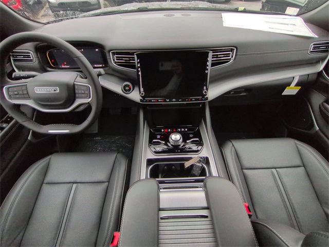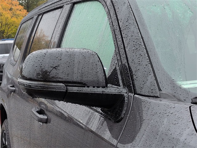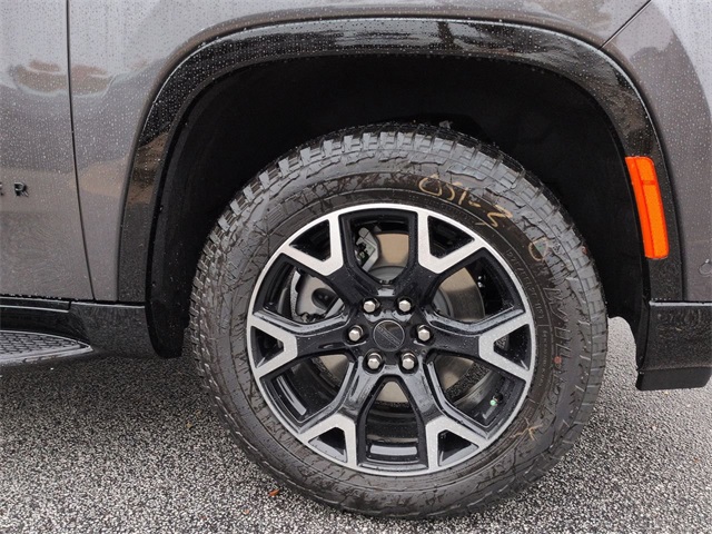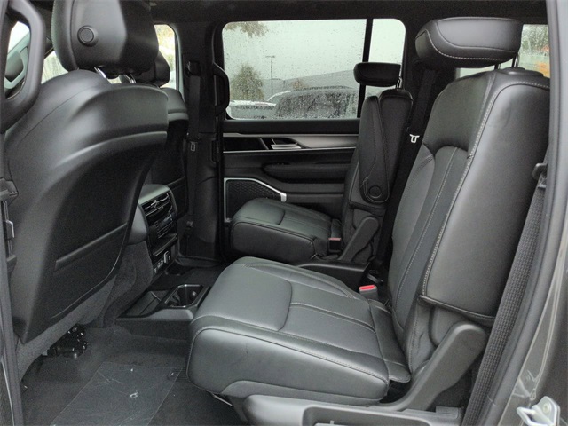 Overland Appearance Package, Quick Order Package 25P Overland (2 Speed On Demand Transfer Case, 3 Panel Sunroof, 60/40 Power Recline 3rd Row Seat, Adjustable Roof Rail Crossbars, All-Season Floor Mats, Auto Adjust In Reverse Exterior Mirrors, Auto High Beam Headlamp Control, Auto Power Folding Exterior Mirrors, Auto Power-Folding Mirrors, Auto-Dimming Exterior Driver Mirror, Black Exterior Accents, Black Roof, Cargo Tray, Electronic Rear Limited Slip Differential, Exterior Mirrors Approach Lamps, Exterior Mirrors w/Memory, Exterior Mirrors w/Supplemental Signals, Fuel Tank Skid Plate Shield, Heated Exterior Mirrors, Heavy-Duty Engine Cooling, Overland Exterior Accents, P&P Park & Unpark Assist w/Stop System, Quadra-Lift Air Suspension, Removable Rear Tow Hook, Selec-Speed Control, Semi Active Damping, Side Distance Warning, Surround View Camera System, Trailer Brake Control, Trailer Hitch Zoom, Vapor Tow Hooks, and Wheels: 20" x 9.0" Machine Face Painted Aluminum), 10 Speakers, 118 MPH Maximum Speed Calibration, 3rd row seats: bench, 4-Wheel Disc Brakes, ABS brakes, Air Conditioning, Alloy wheels, AM/FM radio: SiriusXM with 360L, Anti-whiplash front head restraints, Apple CarPlay/Android Auto, Audio memory, Auto-dimming door mirrors, Auto-dimming Rear-View mirror, Auto-leveling suspension, Automatic temperature control, Brake assist, Bumpers: body-color, Compass, Delay-off headlights, Driver door bin, Driver vanity mirror, Driver's Seat Mounted Armrest, Dual front impact airbags, Dual front side impact airbags, Electronic Stability Control, Emergency communication system: Jeep Connect, Four wheel independent suspension, Front anti-roll bar, Front Bucket Seats, Front Center Armrest w/Storage, Front dual zone A/C, Front fog lights, Front reading lights, Fully automatic headlights, Garage door transmitter, Genuine wood console insert, Genuine wood dashboard insert, Genuine wood door panel insert, Heated door mirrors, Heated front seats, Heated rear seats, Heated steering wheel, Illuminated entry, Knee airbag, Leather Trimmed Bucket Seats, Low tire pressure warning, Memory seat, Navigation System, Normal Duty Suspension, Occupant sensing airbag, Outside temperature display, Overhead airbag, Overhead console, Panic alarm, ParkView Rear Back-Up Camera, Passenger door bin, Passenger seat mounted armrest, Passenger vanity mirror, Power adjustable front head restraints, Power door mirrors, Power driver seat, Power Liftgate, Power passenger seat, Power steering, Power windows, Radio data system, Radio: Uconnect 5 Nav w/10.1" Display, Rain sensing wipers, Rear air conditioning, Rear anti-roll bar, Rear dual zone A/C, Rear reading lights, Rear seat center armrest, Rear window defroster, Rear window wiper, Reclining 3rd row seat, Remote keyless entry, Security system, Speed control, Speed-sensing steering, Speed-Sensitive Wipers, Split folding rear seat, Steering wheel memory, Steering wheel mounted audio controls, Tachometer, Telescoping steering wheel, Tilt steering wheel, Traction control, Trip computer, Turn signal indicator mirrors, Variably intermittent wipers, Ventilated front seats, Voltmeter, and Wheels: 20" x 9.0" Premium 2 Aluminum.
