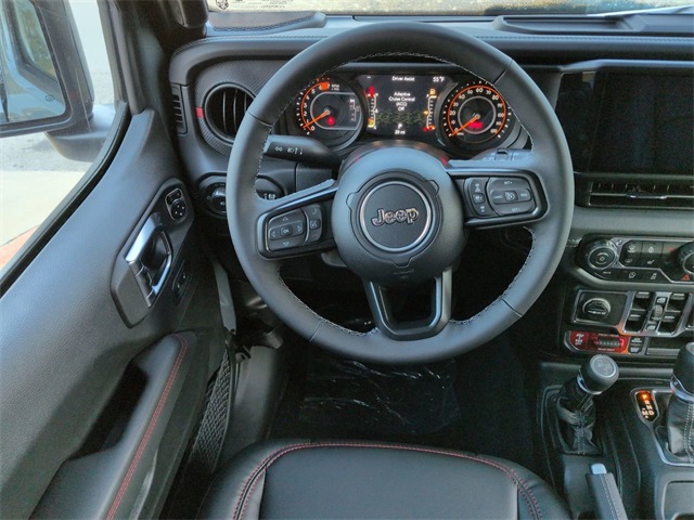 Convenience Group (Heated Front Seats, Heated Steering Wheel, and Universal Garage Door Opener), Quick Order Package 24Y Rubicon X (Acoustic Front Seat Area Carpet, Acoustic Laminated Front Door Glass, Alpine Premium Audio System, Body Color 3-Piece Hard Top, Body Color Rubicon Highline Flare, Freedom Panel Storage Bag, Leather Wrapped Park Brake Handle, Leather Wrapped Shift Knob, MOPAR Hardtop Headliner, MOPAR Hinge-Gate Reinforcement, Nappa Leather Seats, Power 4-Way Driver Lumbar Adjust, Power 4-Way Passenger Lumbar Adjust, Power Adjust 8-Way Driver Seat, Power Adjust 8-Way Front Passenger Seat, Premium Door Trim Panel, Rear Window Defroster, Rear Window Wiper/Washer, Steel Front Bumper, and Steel Rear Bumper), Safety Group (Auto High Beam Headlamp Control, Blind Spot & Cross Path Detection, and ParkSense Rear Park Assist System), Technology Group (12.3" Touchscreen Display, 4G LTE Wi-Fi Hot Spot, Apple CarPlay, Auto-Dimming Rear-View Mirror, Connected Travel & Traffic Services, Connectivity - US/Canada, Google Android Auto, GPS Navigation, HD Radio, Integrated Off-Road Camera, Integrated Voice Command w/Bluetooth, Radio: Uconnect 5 Nav w/12.3" Display, SiriusXM Radio Service, and SiriusXM w/360L), Trailer Tow Prep Package, Xtreme 35" Tire Package (35" Tire Suspension, 97 MPH Vehicle Max Speed Calibration, Anti-Lock 4-Wheel Disc Perf Brakes, and Wheels: 17" x 8" Machined w/Black Pockets), 4-Wheel Disc Brakes, 8 Speakers, ABS brakes, Air Conditioning, Alloy wheels, AM/FM radio: SiriusXM, Apple CarPlay/Android Auto, Automatic temperature control, Aux Battery, Auxiliary Switches, Brake assist, Class II Receiver Hitch, Cloth Low-Back Bucket Seats, Compass, Delay-off headlights, Driver door bin, Driver vanity mirror, Dual front impact airbags, Dual front side impact airbags, Electronic Stability Control, Emergency communication system: Jeep Connect, Front anti-roll bar, Front Bucket Seats, Front Center Armrest w/Storage, Front dual zone A/C, Front fog lights, Front reading lights, Fully automatic headlights, Heated door mirrors, Illuminated entry, Integrated roll-over protection, Low tire pressure warning, MOPAR All-Weather Floor Mats, Non-Lock Fuel Cap w/o Discriminator, Occupant sensing airbag, Outside temperature display, Overhead airbag, Panic alarm, ParkView Rear Back-Up Camera, Passenger door bin, Passenger vanity mirror, Performance Suspension, Power door mirrors, Power steering, Power Top Quarter Window Storage Bag, Power windows, Radio data system, Radio: Uconnect 5 w/12.3" Display, Rear anti-roll bar, Rear reading lights, Remote keyless entry, Removable Rear Quarter Windows, Security system, Sky 1-Touch Power Top, Speed control, Split folding rear seat, Steering wheel mounted audio controls, Stop-Start Dual Battery System, Tachometer, Telescoping steering wheel, Tilt steering wheel, Traction control, Trip computer, Variably intermittent wipers, Voltmeter, Wheel Flare Extensions, and Wheels: 17" x 7.5" Machined/Painted Black. Price includes: $1500 - 2025 National Bonus Cash . Exp. 01/05/2026 $2500 - 2025 National Retail Bonus Cash . Exp. 01/05/2026 $5000 - 2025 National Select Inventory Bonus Cash. Exp. 01/05/2026