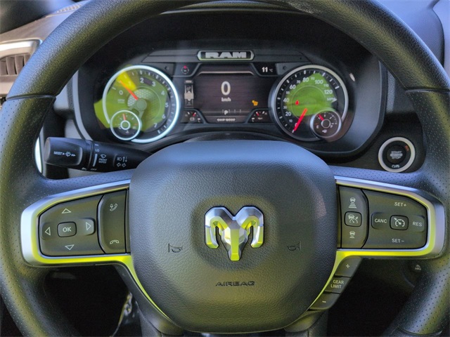 3.21 Rear Axle Ratio, 4 Way Front Headrests, 4-Wheel Disc Brakes, 40/20/40 Split Bench Seat, 6 Speakers, ABS brakes, Air Conditioning, AM/FM radio, Anti-Spin Differential Rear Axle, Apple CarPlay/Android Auto, Auto High-beam Headlights, Black Exterior Mirrors, Brake assist, Compass, Delay-off headlights, Driver door bin, Dual front impact airbags, Dual front side impact airbags, Electronic Stability Control, Exterior Mirrors w/Heating Element, Front anti-roll bar, Front Center Armrest, Front reading lights, Front wheel independent suspension, Fully automatic headlights, Heated door mirrors, Heavy Duty Vinyl 40/20/40 Split Bench Seat, Illuminated entry, Low tire pressure warning, Manual Adjust 4-Way Driver Seat, Manual Adjust 4-Way Front Passenger Seat, Manual Folding Exterior Mirrors, Mopar Black Tubular Side Steps, Occupant sensing airbag, Outside temperature display, Overhead airbag, Overhead console, Panic alarm, ParkView Rear Back-Up Camera, Passenger door bin, Passenger vanity mirror, Power door mirrors, Power steering, Power windows, Radio data system, Radio: Uconnect 5 W w/8.4" Display, RAM Grille Badge - Black, Rear anti-roll bar, Rear step bumper, Remote keyless entry, Speed control, Tachometer, Telescoping steering wheel, Tilt steering wheel, Traction control, Variably intermittent wipers, Voltmeter, and Wheels: 18" x 7.5" Steel Painted.