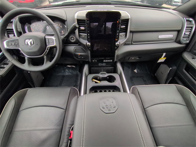 Chrome Bumper Package (Bright Front Bumper and Bright Rear Bumper), Cold Weather Group (Engine Block Heater and MOPAR Winter Front Grille Cover), Laramie Level 2 Plus Equipment Group (#1 Seat Foam Cushion, 115V Auxiliary Rear Power Outlet, 14.4" Touchscreen Display, 17 Speaker harman/kardon Premium Sound, 2 Way Rear Headrest Seat, 2nd Row In Floor Storage Bins, 4 Way Front Headrests, 4G LTE Wi-Fi Hot Spot, Active Lane Management System, Adaptive Steering System, Alexa Built-In, Apple CarPlay, Auto Adjust In Reverse Exterior Mirrors, Auto Dimming Exterior Passenger Mirror, Auto High Beam Headlamp Control, Auto Power-Folding Mirrors, Auto-Dimming Exterior Mirrors, Bucket Seats, Chrome Exterior Mirrors, Connected Travel & Traffic Services, Connectivity - US/Canada, CTR Stop Lamp w/Cargo View Camera, Disassociated Touchscreen Display, Drowsy Driver Detection, Dual Wireless Charging Pad, Emergency Vehicle Alert System (EVAS), Exterior Mirrors Courtesy Lamps, Exterior Mirrors w/Heating Element, Exterior Mirrors w/Memory, Exterior Mirrors w/Supplemental Signals, Foam Bottle Insert (Door Trim Panel), Folding Flat Load Floor Storage, For Details Visit DriveUconnect.com, For More Info, Call 800-643-2112, Forward & Reverse Utility Lights, Front Seat Back Map Pockets, Full Length Upgraded Floor Console, Global Telematics Box Module (TBM), Google Android Auto, GPS Antenna Input, GPS Navigation, HD Radio, Heated Front Seats, Heated Steering Wheel, High Back Seats, Integrated Voice Command w/Bluetooth, Leather Trimmed Bucket Seats, LED Bed Lighting, Mirror Running Lights, MOPAR Deployable Bed Step, MOPAR Spray In Bedliner, Off-Road Information Pages, Power 2-Way Driver Lumbar Adjust, Power 2-Way Passenger Lumbar Adjust, Power Adjust 8-Way Driver Seat, Power Adjust 8-Way Front Passenger Seat, Power Adjust Mirrors, Power Adjustable Pedals w/Memory, Power Deployable Running Boards, Power Heat Fold Memory Telescopic Mirrors, Power Telescoping Mirrors, Power-Adjustable Convex Aux Mirrors, Radio: Uconnect 5 Nav w/14.4" Display, Rain Sensitive Windshield Wipers, Rear 60/40 Folding Seat, Remote Tailgate Release, Selectable Tire Fill Alert, SiriusXM Radio Service, SiriusXM w/360L, Traffic Sign Recognition, and Trailer Tow Pages), Quick Order Package 24H Laramie, 10 Speakers, 4-Wheel Disc Brakes, 50 Gallon Fuel Tank, 5th Wheel/Gooseneck Towing Prep Group, 6000# Front Axle w/Hub Ext, ABS brakes, Air Conditioning, Alloy wheels, AM/FM radio: SiriusXM with 360L, Apple CarPlay/Android Auto, Auto-dimming Rear-View mirror, Automatic temperature control, Black Wheel Center Hub, Box & Rear Fender Clearance Lamps, Brake assist, Bumpers: body-color, Center Hub, Clearance Lamps, Compass, Dash Pass Thru Wire Circuits, Delay-off headlights, Driver door bin, Driver vanity mirror, Dual front impact airbags, Dual front side impact airbags, Dual Rear Wheels, Electronic Stability Control, Front anti-roll bar, Front Center Armrest w/Storage, Front dual zone A/C, Front fog lights, Front License Plate Bracket, Front reading lights, Fully automatic headlights, Garage door transmitter, Heated door mirrors, Heated front seats, Heated steering wheel, I/P Mounted Auxiliary Switches, Illuminated entry, Leather Trim 40/20/40 Bench Seat, Low tire pressure warning, MOPAR Front & Rear Rubber Floor Mats, Navigation System, Occupant sensing airbag, Outside temperature display, Overhead airbag, Overhead console, Panic alarm, ParkView Rear Back-Up Camera, Passenger door bin, Passenger vanity mirror, Power door mirrors, Power driver seat, Power passenger seat, Power steering, Power windows, Radio data system, Radio: Uconnect 5 Nav w/12.0" Display, Rear reading lights, Rear seat center armrest, Rear step bumper, Rear window defroster, Remote keyless entry, Security system, Speed control, Price includes: $2000 - 2025 National Bonus Cash . Exp. 0