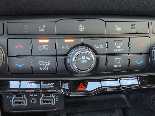 Blacktop Package (Gloss Black Badges), Quick Order Package 22S GT, 3.09 Rear Axle Ratio, 3rd row seats: split-bench, 4-Wheel Disc Brakes, 9 Speakers, ABS brakes, Air Conditioning, Alloy wheels, AM/FM radio: SiriusXM w/360L, Apple CarPlay/Android Auto, Auto-dimming Rear-View mirror, Auto-leveling suspension, Automatic temperature control, Brake assist, Bumpers: body-color, Cloth Bucket Seats with Shift Insert, Compass, Delay-off headlights, Driver door bin, Driver vanity mirror, Dual front impact airbags, Dual front side impact airbags, Electronic Stability Control, Emergency communication system: Dodge Connect, Exterior Mirrors with Heating Element, Four wheel independent suspension, Front anti-roll bar, Front Bucket Seats, Front Center Armrest w/Storage, Front dual zone A/C, Front reading lights, Fully automatic headlights, Garage door transmitter, Gloss Black Exterior Mirrors, Heated door mirrors, Heated front seats, Heated steering wheel, Illuminated entry, Knee airbag, Leather steering wheel, Low tire pressure warning, Navigation System, Occupant sensing airbag, Outside temperature display, Overhead airbag, Overhead console, Panic alarm, ParkView Rear Back-Up Camera, Passenger door bin, Passenger vanity mirror, Power door mirrors, Power driver seat, Power Liftgate, Power steering, Power windows, Radio data system, Radio: Uconnect 5 Nav with 10.1" Display, Rain sensing wipers, Rear air conditioning, Rear anti-roll bar, Rear Load Leveling Suspension, Rear reading lights, Rear seat center armrest, Rear window defroster, Rear window wiper, Red Accent Stitching, Remote keyless entry, Security system, Speed control, Speed-sensing steering, Speed-Sensitive Wipers, Split folding rear seat, Spoiler, Sport steering wheel, Steering wheel mounted audio controls, Tachometer, Telescoping steering wheel, Tilt steering wheel, Traction control, Trip computer, Variably intermittent wipers, Voltmeter, Wheels: 20" x 8" Black Noise Split 5-Spoke, and Wheels: 20" x 8" Satin Carbon Split 5-Spoke.