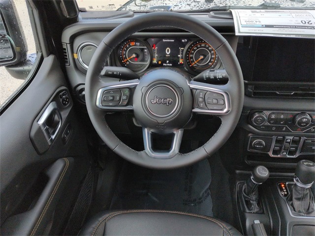 Quick Order Package 24G, Sahara Popular Equipment Group (12.3" Touchscreen Display, 4G LTE Wi-Fi Hot Spot, Alpine Premium Audio System, Apple CarPlay, Auto High Beam Headlamp Control, Auto-Dimming Rear-View Mirror, Blind Spot and Cross Path Detection, Connected Travel and Traffic Services, Connectivity - US/Canada, For More Info, Call 800-643-2112, Google Android Auto, GPS Navigation, Hard Seat Back, HD Radio, Integrated Center Stack Radio, Integrated Off-Road Camera, Integrated Voice Command with Bluetooth, Leather Wrapped Park Brake Handle, Leather Wrapped Shift Knob, Mckinley Trimmed Seats, ParkSense Rear Park Assist System, Power 4-Way Driver Lumbar Adjust, Power 4-Way Passenger Lumbar Adjust, Power Adjust 8-Way Driver Seat, Power Adjust 8-Way Front Passenger Seat, Radio: Uconnect 5 Navigation with 12.3" Display, Side Steps, SiriusXM Radio Service, SiriusXM with 360L, and Universal Garage Door Opener), 3.45 Overall Top Gear Ratio, 4-Wheel Disc Brakes, 8 Speakers, ABS brakes, Air Conditioning, Alloy wheels, AM/FM radio: SiriusXM with 360L, Apple CarPlay/Android Auto, Automatic temperature control, Aux Battery, Brake assist, Cloth Low-Back Bucket Seats, Compass, Delay-off headlights, Driver door bin, Driver vanity mirror, Dual front impact airbags, Dual front side impact airbags, Electronic Stability Control, Emergency communication system: Jeep Connect, Front anti-roll bar, Front Bucket Seats, Front Center Armrest w/Storage, Front dual zone A/C, Front fog lights, Front reading lights, Fully automatic headlights, Heated door mirrors, Heated front seats, Heated steering wheel, Heavy Duty Suspension with Gas Shocks, Illuminated entry, Integrated roll-over protection, Low tire pressure warning, MOPAR All-Weather Floor Mats, Non-Lock Fuel Cap Without Discriminator, Occupant sensing airbag, Outside temperature display, Overhead airbag, Panic alarm, ParkView Rear Back-Up Camera, Passenger door bin, Passenger vanity mirror, Power door mirrors, Power steering, Power Top Quarter Window Storage Bag, Power windows, Radio data system, Radio: Uconnect 5 with 12.3" Display, Rear anti-roll bar, Rear reading lights, Rear Window Defroster, Rear Window Wiper/Washer, Remote keyless entry, Removable Rear Quarter Windows, Security system, Sky 1-Touch Power Top, Speed control, Split folding rear seat, Steering wheel mounted audio controls, Stop-Start Dual Battery System, Tachometer, Telescoping steering wheel, Tilt steering wheel, Traction control, Trip computer, Variably intermittent wipers, Voltmeter, and Wheels: 18" x 7.5" Machine/Painted Gray. Price includes: $2500 - 2026 National Select Inventory Bonus Cash. Exp. 01/05/2026