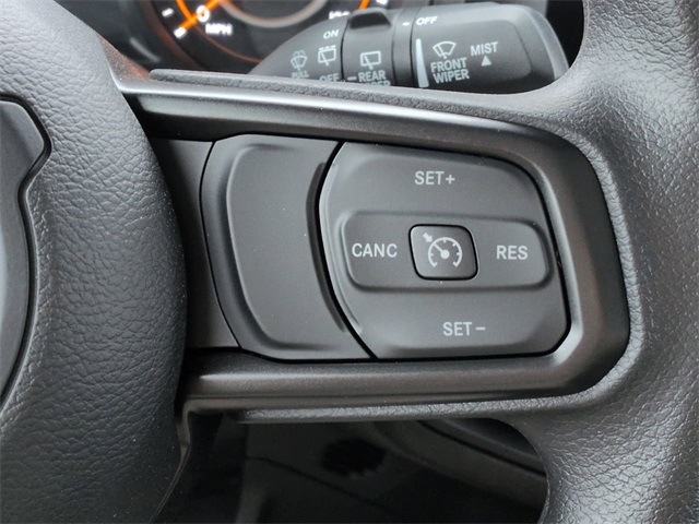 Quick Order Package 22B Sport, 12.3" Touchscreen Display, 3.45 Overall Top Gear Ratio, 4-Wheel Disc Brakes, 4G LTE Wi-Fi Hot Spot, 8 Speakers, ABS brakes, Air Conditioning, AM/FM radio: SiriusXM with 360L, Apple CarPlay, Apple CarPlay/Android Auto, Aux Battery, Black 3-Piece Hard Top, Brake assist, Cloth Low-Back Bucket Seats, Compass, Connectivity - US/Canada, Delay-off headlights, Driver door bin, Driver vanity mirror, Dual front impact airbags, Dual front side impact airbags, Electronic Stability Control, For More Info, Call 800-643-2112, Freedom Panel Storage Bag, Front anti-roll bar, Front Bucket Seats, Front Center Armrest w/Storage, Front fog lights, Front reading lights, Google Android Auto, Illuminated entry, Integrated Center Stack Radio, Integrated roll-over protection, Low tire pressure warning, MOPAR All-Weather Floor Mats, Non-Lock Fuel Cap Without Discriminator, Normal Duty Suspension, Occupant sensing airbag, Outside temperature display, Overhead airbag, Panic alarm, ParkView Rear Back-Up Camera, Passenger door bin, Passenger vanity mirror, Power steering, Power windows, Radio data system, Radio: Uconnect 5 with 12.3" Display, Rear anti-roll bar, Rear reading lights, Rear Window Defroster, Rear Window Wiper/Washer, Remote keyless entry, SiriusXM Radio Service, SiriusXM with 360L, Speed control, Steering wheel mounted audio controls, Stop-Start Dual Battery System, Tachometer, Telescoping steering wheel, Tilt steering wheel, Traction control, Trip computer, Variably intermittent wipers, Wheels: 17" x 7.5" Black Steel Styled, and Wheels: 17" x 7.5" Gray.