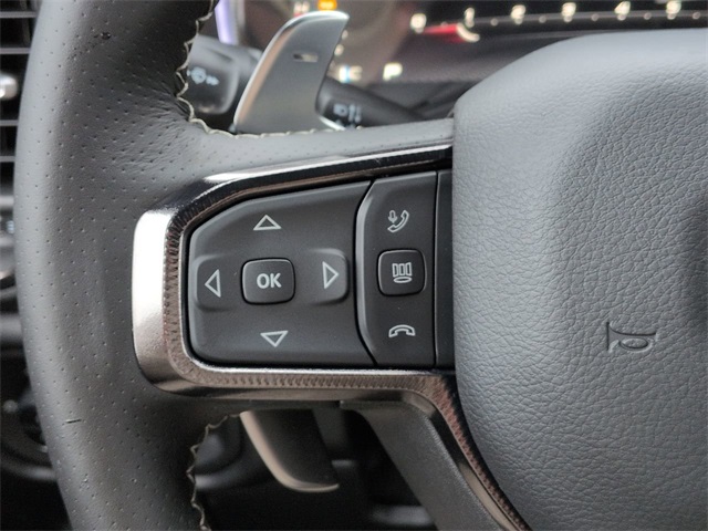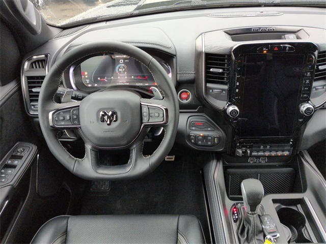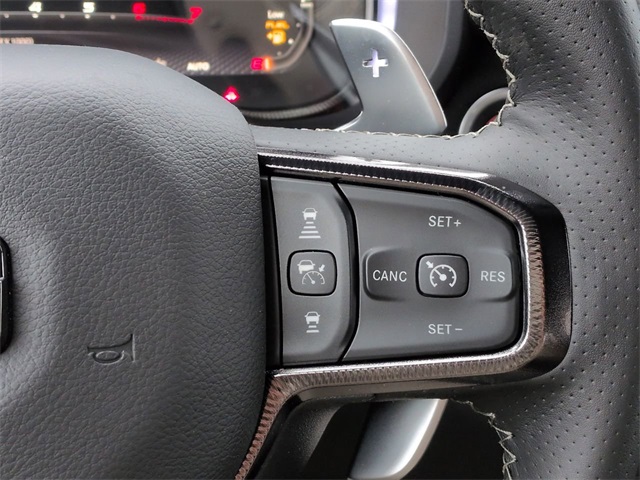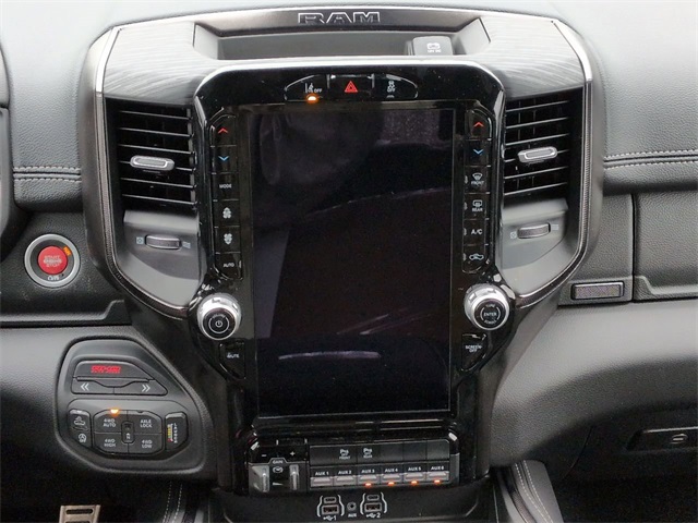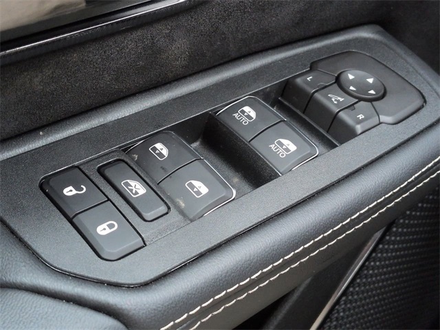 Quick Order Package 22Y RHO, 10 Speakers, 3.92 Rear Axle Ratio, 4-Wheel Disc Brakes, 4G LTE Wi-Fi Hot Spot, ABS brakes, Adaptive suspension, Adjustable pedals, Air Conditioning, Alloy wheels, AM/FM radio, Apple CarPlay/Android Auto, Auto High-beam Headlights, Auto Power-Folding Mirrors, Auto-dimming door mirrors, Auto-Dimming Exterior Driver Mirror, Auto-dimming Rear-View mirror, Automatic temperature control, Brake assist, Compass, Connected Travel and Traffic Services, Connectivity - US/Canada, Delay-off headlights, Disassociated Touchscreen Display, Driver door bin, Driver vanity mirror, Dual front impact airbags, Dual front side impact airbags, Electronic Stability Control, Exterior Mirrors Courtesy Lamps, Exterior Mirrors with Heating Element, Exterior Mirrors with Supplemental Signals, Exterior Parking Camera Rear, Flareside Box, Front anti-roll bar, Front Bucket Seats, Front Center Armrest w/Storage, Front dual zone A/C, Front fog lights, Front reading lights, Front wheel independent suspension, Fully automatic headlights, Garage door transmitter, GPS Navigation, HD Radio, Heated door mirrors, Heated front seats, Heated steering wheel, Illuminated entry, Integrated Center Stack Radio, Integrated Voice Command with Bluetooth, Leather Shift Knob, Leather steering wheel, Leather Trimmed Bucket Seats, Low tire pressure warning, Navigation System, Occupant sensing airbag, Outside temperature display, Overhead airbag, Overhead console, Panic alarm, Passenger door bin, Passenger vanity mirror, Power door mirrors, Power driver seat, Power passenger seat, Power steering, Power windows, Radio data system, Radio: Uconnect 5 Navigation with 12.0" Display, Rear reading lights, Rear seat center armrest, Rear step bumper, Rear window defroster, Remote keyless entry, Security system, SiriusXM Radio Service, Speed control, Split folding rear seat, Sport steering wheel, Steering wheel mounted audio controls, Tachometer, Telescoping steering wheel, Tilt steering wheel, Traction control, Trip computer, Turn signal indicator mirrors, USB Host Flip, Variably intermittent wipers, Voltmeter, and Wheels: 18" x 9" Black Paint/Polish Aluminum.