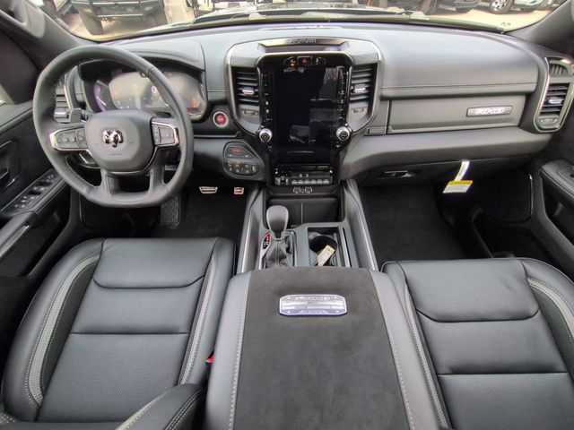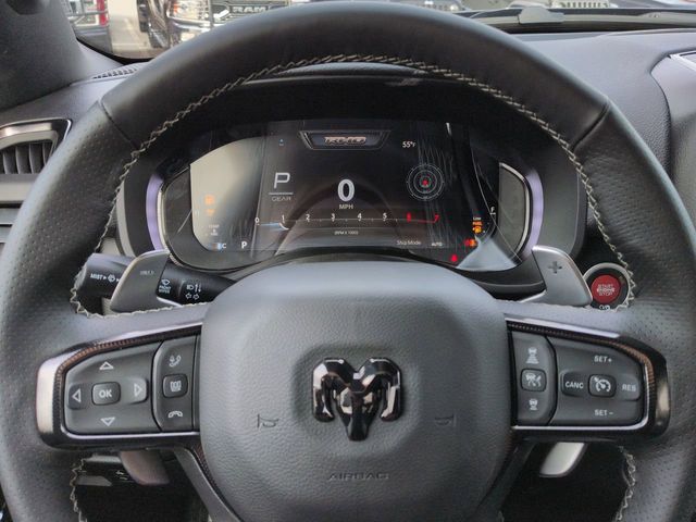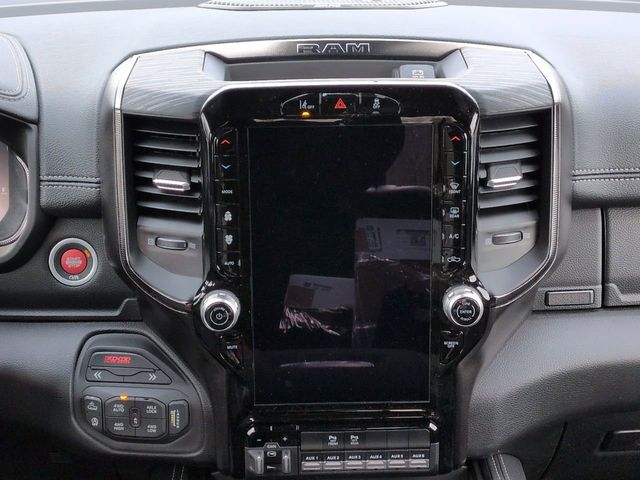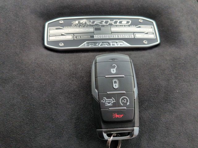 Quick Order Package 22Y RHO, 10 Speakers, 3.92 Rear Axle Ratio, 4-Wheel Disc Brakes, 4G LTE Wi-Fi Hot Spot, ABS brakes, Adaptive suspension, Adjustable pedals, Air Conditioning, Alloy wheels, AM/FM radio, Apple CarPlay/Android Auto, Auto High-beam Headlights, Auto Power-Folding Mirrors, Auto-dimming door mirrors, Auto-Dimming Exterior Driver Mirror, Auto-dimming Rear-View mirror, Automatic temperature control, Brake assist, Compass, Connected Travel and Traffic Services, Connectivity - US/Canada, Delay-off headlights, Disassociated Touchscreen Display, Driver door bin, Driver vanity mirror, Dual front impact airbags, Dual front side impact airbags, Electronic Stability Control, Exterior Mirrors Courtesy Lamps, Exterior Mirrors with Heating Element, Exterior Mirrors with Supplemental Signals, Exterior Parking Camera Rear, Flareside Box, Front anti-roll bar, Front Bucket Seats, Front Center Armrest w/Storage, Front dual zone A/C, Front fog lights, Front reading lights, Front wheel independent suspension, Fully automatic headlights, Garage door transmitter, GPS Navigation, HD Radio, Heated door mirrors, Heated front seats, Heated steering wheel, Illuminated entry, Integrated Center Stack Radio, Integrated Voice Command with Bluetooth, Leather Shift Knob, Leather steering wheel, Leather Trimmed Bucket Seats, Low tire pressure warning, Navigation System, Occupant sensing airbag, Outside temperature display, Overhead airbag, Overhead console, Panic alarm, Passenger door bin, Passenger vanity mirror, Power door mirrors, Power driver seat, Power passenger seat, Power steering, Power windows, Radio data system, Radio: Uconnect 5 Navigation with 12.0" Display, Rear reading lights, Rear seat center armrest, Rear step bumper, Rear window defroster, Remote keyless entry, Security system, SiriusXM Radio Service, Speed control, Split folding rear seat, Sport steering wheel, Steering wheel mounted audio controls, Tachometer, Telescoping steering wheel, Tilt steering wheel, Traction control, Trip computer, Turn signal indicator mirrors, USB Host Flip, Variably intermittent wipers, Voltmeter, and Wheels: 18" x 9" Black Paint/Polish Aluminum.