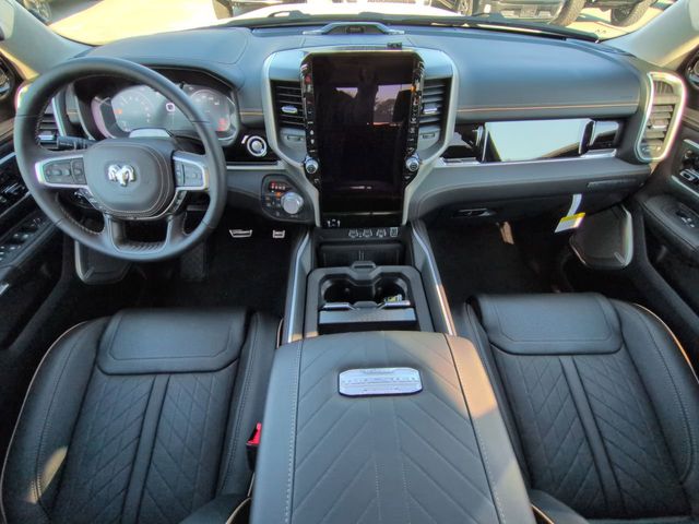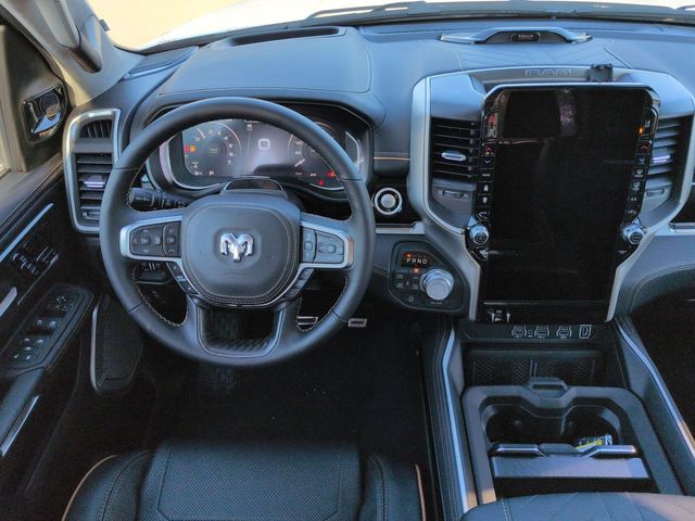 Bed Utility Group (Exterior 115V AC Outlet, MOPAR 4 Adjustable Cargo Tie-Down Hooks, and Truck Bed Cargo Divider), Quick Order Package 22V Tungsten, 12-Way/1-Way Trailer Connector, 3.92 Rear Axle Ratio, 4-Wheel Disc Brakes, ABS brakes, Adjustable pedals, Air Conditioning, Alloy wheels, AM/FM radio, Apple CarPlay/Android Auto, Audio memory, Auto High-beam Headlights, Auto Power-Folding Mirrors, Auto-dimming door mirrors, Auto-Dimming Exterior Driver Mirror, Auto-dimming Rear-View mirror, Auto-leveling suspension, Automatic temperature control, Bodyside moldings, Brake assist, Bumpers: body-color, Chrome Exterior Mirrors, Compass, Delay-off headlights, Driver door bin, Driver vanity mirror, Dual front impact airbags, Dual front side impact airbags, E-Locker Rear Axle, Electronic Stability Control, Exterior Mirrors Courtesy Lamps, Exterior Mirrors with Heating Element, Exterior Mirrors with Memory, Exterior Mirrors with Supplemental Signals, Exterior Parking Camera Rear, Front anti-roll bar, Front Bucket Seats, Front Center Armrest w/Storage, Front dual zone A/C, Front fog lights, Front License Plate Bracket, Front reading lights, Front wheel independent suspension, Fully automatic headlights, Garage door transmitter, Heads-Up Display, Heated door mirrors, Heated front seats, Heated rear seats, Heated steering wheel, Illuminated entry, Leather steering wheel, Low tire pressure warning, Memory seat, Navigation System, Occupant sensing airbag, Outside temperature display, Overhead airbag, Overhead console, Panic alarm, Passenger door bin, Passenger vanity mirror, Pedal memory, Power adjustable front head restraints, Power door mirrors, Power driver seat, Power moonroof, Power passenger seat, Power steering, Power windows, Premium Leather Bucket Seats, Radio data system, Radio: Uconnect 5 Nav with 14.4" Display, Rain sensing wipers, Rear anti-roll bar, Rear reading lights, Rear seat center armrest, Rear step bumper, Rear window defroster, Remote keyless entry, Security system, Speed control, Split folding rear seat, Steering wheel mounted audio controls, Tachometer, Telescoping steering wheel, Tilt steering wheel, Traction control, Trailer Brake Control, Trip computer, Turn signal indicator mirrors, Variably intermittent wipers, Ventilated front seats, Ventilated rear seats, Voltmeter, and Wheels: 22" x 9" Polish/Painted with Inserts.