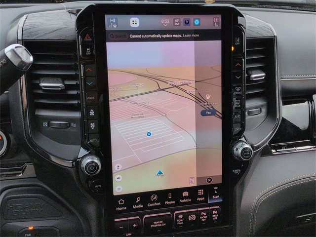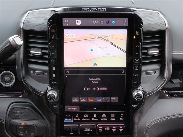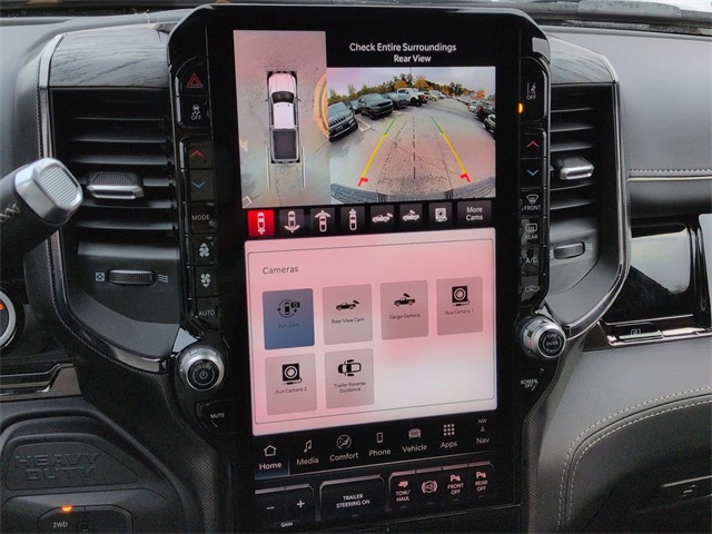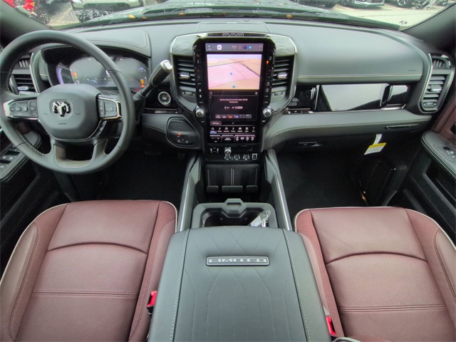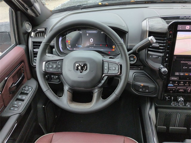 Cold Weather Group (Engine Block Heater and MOPAR Winter Front Grille Cover), Limited Level 1 Equipment Group (Active Lane Management System, Adaptive Steering System, Center Stop Lamp with Cargo View Camera, Digital Rearview Mirror, Drowsy Driver Detection, LED Bed Lighting, MOPAR Spray in Bedliner, Power Deployable Running Boards, Surround View Camera System, Traffic Sign Recognition, Trailer Reverse Guidance, and Trailer Tire Pressure Monitoring System), Quick Order Package 24M Limited, Tow Technology Plus Group (Digital 3.0 Rear View Auto Dim Mirror and Trailer Reverse Steering Control), 17 Speakers, 3.42 Axle Ratio, 4-Wheel Disc Brakes, 5th Wheel/Gooseneck Towing Prep Group, ABS brakes, Adjustable pedals, Air Conditioning, Alloy wheels, AM/FM radio: SiriusXM with 360L, Apple CarPlay/Android Auto, Audio memory, Auto High-beam Headlights, Auto-dimming door mirrors, Auto-dimming Rear-View mirror, Automatic temperature control, Black Wheel Center Hub, Bodyside moldings, Brake assist, Bumpers: body-color, Clearance Lamps, Compass, Delay-off headlights, Driver door bin, Driver vanity mirror, Dual front impact airbags, Dual front side impact airbags, Electronic Stability Control, Front anti-roll bar, Front Bucket Seats, Front Center Armrest w/Storage, Front dual zone A/C, Front fog lights, Front License Plate Bracket, Front reading lights, Fully automatic headlights, Garage door transmitter, Genuine wood console insert, Genuine wood dashboard insert, Genuine wood door panel insert, harman/kardon Speakers, Heated door mirrors, Heated front seats, Heated rear seats, Heated steering wheel, Illuminated entry, Leather steering wheel, Low tire pressure warning, Memory seat, Navigation System, Occupant sensing airbag, Outside temperature display, Overhead airbag, Overhead console, Panic alarm, ParkView Rear Back-Up Camera, Passenger door bin, Passenger vanity mirror, Pedal memory, Pickup Box, Power door mirrors, Power driver seat, Power passenger seat, Power steering, Power windows, Radio data system, Radio: Uconnect 5 Nav with 14.4" Display, Rain sensing wipers, Rear Backup Alarm, Rear reading lights, Rear seat center armrest, Rear step bumper, Rear window defroster, Remote keyless entry, Security system, Speed control, Split folding rear seat, Steering wheel mounted audio controls, Tachometer, Tilt steering wheel, Traction control, Trip computer, Turn signal indicator mirrors, Ultra Premium Leather Seats, Variably intermittent wipers, Vendor Painted Cargo Box, Vendor Painted Cargo Box Tracking, Ventilated front seats, Voltmeter, and Wheels: 20" x 8" Diamond Cut Aluminum. Price includes: $1000 - 2026 National Bonus Cash . Exp. 01/05/2026