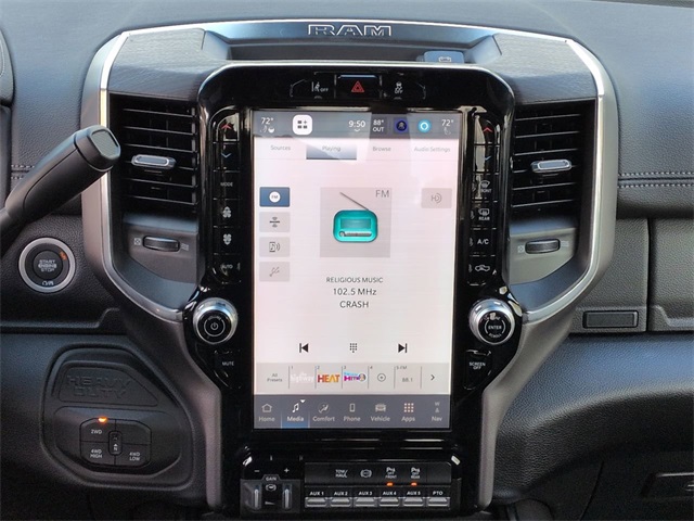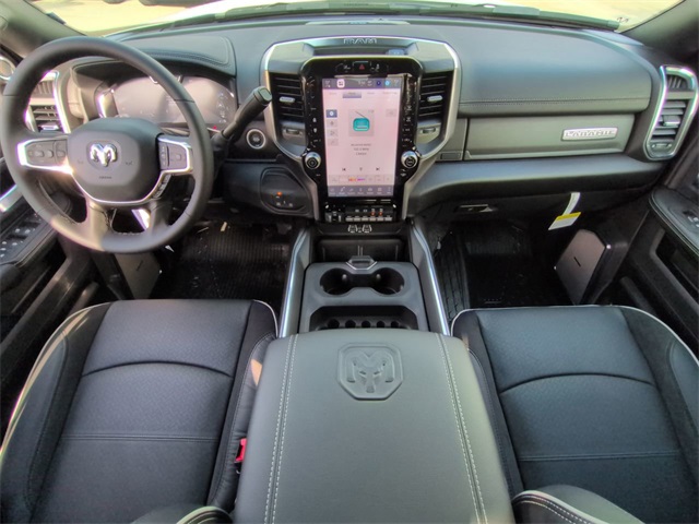 Cold Weather Group (Engine Block Heater and MOPAR Winter Front Grille Cover), Laramie Trim Group (#1 Seat Foam Cushion, 115V Auxiliary Power Outlet, 115V Auxiliary Rear Power Outlet, 12.0" Touchscreen Display, 2 Way Rear Headrest Seat, 2-Door Passive Entry, Front Door Locks, 4 Way Front Headrests, 400W Inverter, 4G LTE Wi-Fi Hot Spot, Apple CarPlay, Auto High Beam Headlamp Control, Bi-Function LED Projector Headlamps, Body Color Door Handles, Body Color Fender Flares, Bucket Seats, Center Hub, Chrome Billets/Accents Grille, Cluster 12" TFT Color Display, Connectivity - US/Canada, Courtesy Lamps, Digital Rearview Mirror, Disassociated Touchscreen Display, Dual Glove Boxes, Dual Wireless Charging Pad, Folding Flat Load Floor Storage, For Details, Visit DriveUconnect.com, For More Info, Call 800-643-2112, Front Door Accent Lighting, Front Seat Back Map Pockets, Full Length Upgraded Floor Console, Glove Box Lamp, Google Android Auto, GPS Antenna Input, GPS Navigation, HD Radio, Heated Front Seats, Heated Second Row Seats, Heated Steering Wheel, High Back Seats, Highline Door Trim Panel, Leather Trimmed Bucket Seats, LED Daytime Running Headlamps, LED Interior Lighting, Locking Lower Glove Box, Luxury Steering Wheel, Off-Road Info Pages, Overhead LED Lamps, Painted Front Bumper, ParkSense Front/Rear Park Assist System, Power 2-Way Driver Lumbar Adjust, Power 2-Way Passenger Lumbar Adjust, Power Adjust 8-Way Driver Seat, Power Adjust 8-Way Front Passenger Seat, Premium Overhead Console, Rain Sensitive Windshield Wipers, Rear 60/40 Folding Seat, Rear Door Accent Lighting, Rear Power Sliding Window, Rear Window Defroster, Remote Start System, SiriusXM Radio Service, Steering Wheel Mounted Audio Controls, Trailer Tow Pages, Universal Garage Door Opener, Ventilated Front Seats, and Wheels: 19.5" x 6.0" Forged Aluminum Polished), Quick Order Package 25Z Big Horn (19.5" x 6.0" Steel Wheels, 40/20/40 Split Bench Seat, Acoustic Front Door Glass, Black Exterior Mirrors, Black-Out Tape, Body Insulation, Bright Front Bumper, Chrome Grille Surround, Cloth 40/20/40 Bench Seat, Exterior Mirrors Courtesy Lamps, Manual Adjust 4-Way Driver Seat, Manual Adjust 4-Way Front Passenger Seat, Manual Folding Exterior Mirrors, Mirror Power Heat Fold Telescope Black, Mirror Running Lights, Power Adjust Mirrors, Power-Adjustable Convex Aux Mirrors, RAM Door Badges, Rear Folding Seat, Remote USB Port - Charge Only, Satin Chrome Key Fob, Storage Tray, Tinted Acoustic Windshield Glass, Trailer Brake Control, Trailer Light Check, and Traveler/Mini Trip Computer), Safety Group (Adaptive Steering System, Drowsy Driver Detection, Lane Keep Assist, and Security Alarm), 4-Wheel Disc Brakes, 4.44 Axle Ratio, 6 Speakers, ABS brakes, Air Conditioning, AM/FM radio: SiriusXM, Apple CarPlay/Android Auto, Compass, Delay-off headlights, Driver door bin, Dual front impact airbags, Dual rear wheels, Electronic Stability Control, Emergency communication system: RAM Connect, Front anti-roll bar, Front Center Armrest w/Storage, Front fog lights, Front License Plate Bracket, Front reading lights, Fully automatic headlights, Illuminated entry, Occupant sensing airbag, Outside temperature display, Overhead console, Panic alarm, ParkView Rear Back Up Camera, Passenger door bin, Passenger vanity mirror, Power steering, Power Take-Off Right/Left, Power windows, Radio data system, Rear anti-roll bar, Remote keyless entry, Speed control, Tachometer, Tilt steering wheel, Traction control, Variably intermittent wipers, Voltmeter, and Wheels: 19.5" x 6.0" Black Painted SteeL.