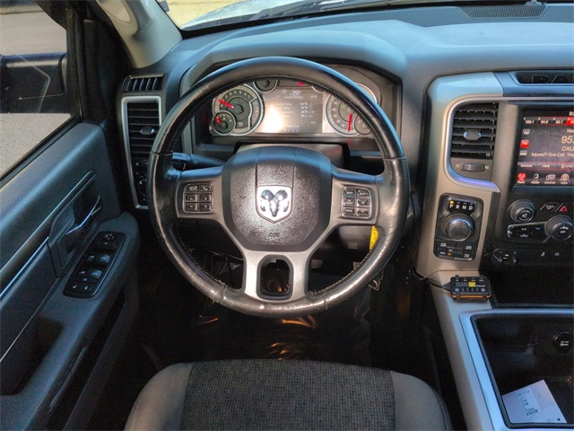 This 2014 Ram 1500 Big Horn in Bright Silver Metallic Clearcoat features: 4D Crew Cab, HEMI 5.7L V8 Multi Displacement VVT, 8-Speed Automatic, 4WD, **LOCAL TRADE**, 1-Yr SIRIUSXM Travel Link Service, 115V Auxiliary Power Outlet, 4-Wheel Disc Brakes, 40/20/40 Split Bench Seat, 6 Speakers, ABS brakes, Anti-Spin Differential Rear Axle, Ash Tray Lamp, Auto Dim Exterior Mirror, Auto-Dimming Exterior Passenger Mirror, Backup Camera, Bighorn Badge, Bluetooth w/ Audio Streaming, Brake assist, Bright/Bright Billets Grille, Charge Only Remote USB Port, Class IV Receiver Hitch, Cloth 40/20/40 Bench Seat, Compass, Delay-off headlights, Electric Shift-On-Demand Transfer Case, Electroluminescent Instrument Cluster, Electronic Stability Control, Exterior Mirrors Courtesy Lamps, Exterior Mirrors w/Heating Element, Exterior Mirrors w/Supplemental Signals, Fog Lamps, Folding Flat Load Floor Storage, For Details Go To DriveUconnect.com, Front Armrest w/3 Cupholders, Front Center Seat Cushion Storage, Front wheel independent suspension, Fully automatic headlights, Glove Box Lamp, GPS Navigation, HD Radio, Heated door mirrors, Illuminated entry, Integrated Voice Command w/Bluetooth, Leather Wrapped Steering Wheel, Low tire pressure warning, Luxury Group, Luxury Package, Outside temperature display, Overhead console, Overhead Console w/Garage Door Opener, Parking Sensors, ParkSense Front/Rear Park Assist System, ParkView Rear Back-Up Camera, Power 10-Way Driver Seat, Power Folding Mirrors, Power Heated Fold-Away Mirrors, Power Lumbar Adjust, Power Mirror Package, Power Package, Power steering, Power windows, Preferred Equipment Package, Premium Cloth 40/20/40 Bench Seat, Quick Order Package 26Z Big Horn, Radio data system, Radio: Uconnect 8.4AN AM/FM/SXM/HD/BT/NAV, Rear 60/40 Split Folding Seat, Rear Camera & Park Assist Group, Rear Dome w/On/Off Switch Lamp, Rear step bumper, Rear-View Auto-Dimming Mirror w/Microphone, Remote keyless entry, Remote SD Card Slot, Reverse Brake Assist, Reverse Sensing, SIRIUSXM Traffic, SiriusXM Travel Link, Spray In Bedliner, Steering Wheel Mounted Audio Controls, Storage Tray, Sun Visors w/Illuminated Vanity Mirrors, Tilt steering wheel, Traction control, Trip computer, Uconnect Access 1 Year Trial, Uconnect Voice Command w/Bluetooth, Underhood Lamp, Universal Garage Door Opener, Variably intermittent wipers, Wheels: 20" x 8" Aluminum Chrome Clad.