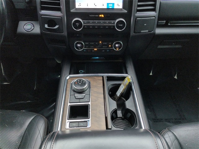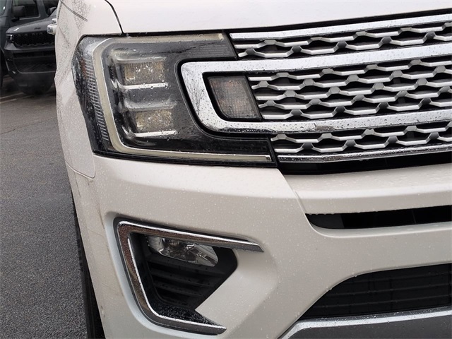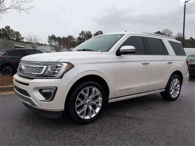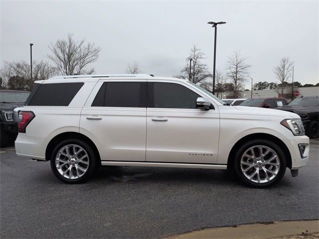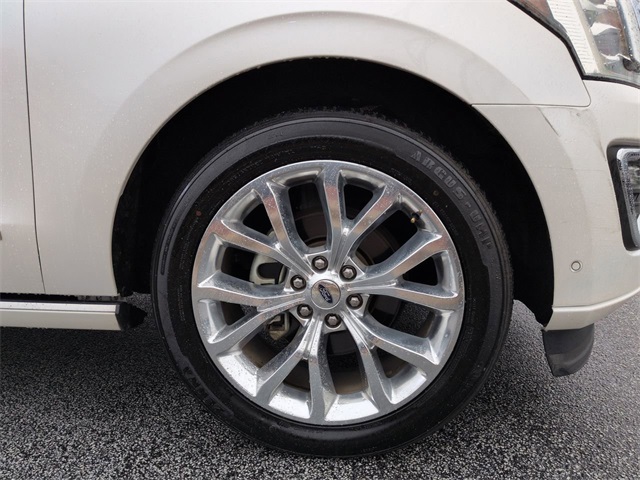 This 2018 Ford Expedition Platinum in White Platinum features: 4D Sport Utility, EcoBoost 3.5L V6 GTDi DOHC 24V Twin Turbocharged, 10-Speed Automatic, RWD, 12 Speakers, 22" Polished Aluminum Wheels, 360-Degree Camera, 3rd Row Seating, 4-Wheel Disc Brakes, 8" Color Touchscreen, ABS brakes, Active Park Assist, Adaptive suspension, Adjustable pedals, AM/FM radio: SiriusXM, Android Auto, Apple Carplay, AppLink/Apple CarPlay and Android Auto, Auto High-beam Headlights, Auto LED Headlights, Auto-dimming door mirrors, Auto-dimming Rear-View mirror, Automatic temperature control, Backup Camera, Blind Spot Monitoring, BLIS w/ Cross Traffic Alert, Bluetooth w/ Audio Streaming, Brake assist, Cold Weather Package, Compass, Delay-off headlights, Electronic Stability Control, Emergency communication system: SYNC 3 911 Assist, Equipment Group 600A (DISC), Exterior Parking Camera Rear, Four wheel independent suspension, Front Center Armrest, Front dual zone A/C, Front fog lights, Fully automatic headlights, Garage door transmitter, Genuine wood console insert, Genuine wood dashboard insert, Genuine wood door panel insert, Heated & Cooled Perforated Leather Fr Bucket Seats, Heated door mirrors, Heated front seats, Heated rear seats, Heated steering wheel, Illuminated entry, Lane Departure Warning System, Leather steering wheel, Low tire pressure warning, Memory Package, Memory seat, Multi Zone Climate Control, Navigation System, Outside temperature display, Overhead console, Panic alarm, Panoramic Sunroof/Moonroof, Parking Sensors, Pedal memory, Power door mirrors, Power Liftgate, Power Mirror Package, Power Package, Power passenger seat, Power Running Boards, Radio data system, Radio: B&O PLAY Premium Audio System by harman, Rain sensing wipers, Rear air conditioning, Rear audio controls, Rear Climate Package, Rear window wiper, Remote keyless entry, Remote Start, Reverse Brake Assist, Reverse Sensing, Roof rack, Security system, SiriusXM Satellite Radio, Speed-sensing steering, Speed-Sensitive Wipers, Split folding rear seat, Steering wheel memory, Steering wheel mounted audio controls, SYNC 3 Communications & Entertainment System, Telescoping steering wheel, Tilt steering wheel, Traction control, Trip computer, Turn signal indicator mirrors, Ventilated front seats.