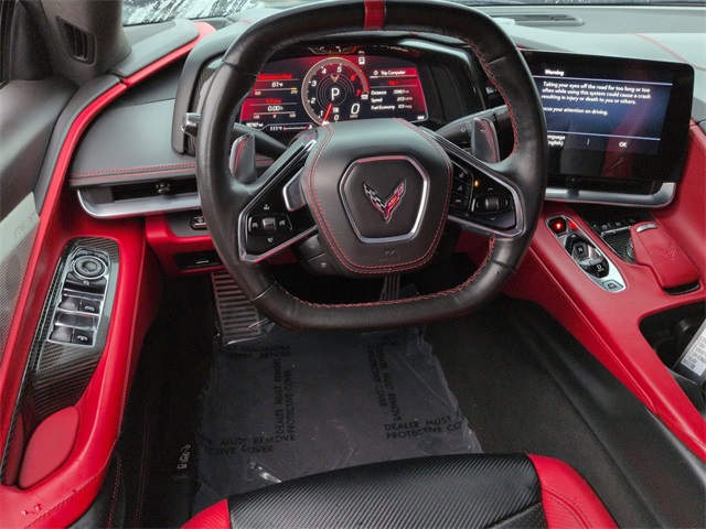 This 2021 Chevrolet Corvette Stingray in Black features: 2D Convertible, 6.2L V8, 8 Speed Dual Clutch, RWD, 12.4" LCD Digital Driver Cluster, 14 Speakers, 2 Cargo Nets, 4-Wheel Disc Brakes, 4G WiFi Hotspot Telematics, 8-Way Power Driver Seat Adjuster, 8-Way Power Passenger Seat Adjuster, 8" Color Touchscreen, ABS brakes, Adaptive Ride Package, Adaptive Suspension, Android Auto, Apple Carplay, Auto-dimming door mirrors, Auto-dimming Rear-View mirror, Automatic temperature control, Backup Camera, Battery Protection Package, Black Lug Nuts (LPO), Black Wheel Locks (LPO), Blind Spot Monitoring, Bluetooth w/ Audio Streaming, Bose High End Sound Package, Bose Performance Series Sound System w/14 Speakers, Brake assist, Carbon Flash Metallic-Painted Outside Mirrors, Cold Weather Package, Compass, Convertible HardTop, Convertible roof lining, Custom Leather Wrapped Interior Package, Delay-off headlights, Driver Power Bolster Seat Adjuster, Electrical Theft Deterrent System, Electronic Limited-Slip Differential, Electronic Stability Control, Emergency communication system: OnStar and Chevrolet connected services capable, Four wheel independent suspension, Front Center Armrest, Front dual zone A/C, Fully automatic headlights, Garage door transmitter, Glass rear window, GT2 Bucket Seats, HD Front & Rear Vision Cameras, HD Radio, HD Surround Vision, Head-Up Display, Heads-Up Display, Heated & Vented Driver & Passenger Seats, Heated door mirrors, Heated front seats, Heated Steering Wheel, Heated steering wheel, Heavy-Duty Cooling System, Illuminated entry, Integrated roll-over protection, Leather Seats, Leather Shift Knob, Leather steering wheel, Low tire pressure warning, LT Package, Memory Driver & Passenger Convenience Package, Memory Package, Memory seat, Napa Lthr Seating Surfaces w/Perforated Inserts, Navigation System, Outside temperature display, Overhead console, Panic alarm, Parking Sensors, Passenger Power Bolster Seat Adjuster, Performance Data & Video Recorder, Performance Exhaust w/Stainless-Steel Tips, Performance Handling Package, Performance Package, Performance Rear Axle Ratio, Performance Traction Management, Power convertible roof, Power door mirrors, Power Driver Lumbar Control Seat Adjuster, Power Mirror Package, Power Package, Power Passenger Lumbar Control Seat Adjuster, Power passenger seat, Power-Adjustable Outside Heated Mirrors, Preferred Equipment Group 3LT, Preferred Equipment Package, Premium Sound Package, Push Button Start, Radio data system, Radio: Chevrolet Infotainment 3 Premium System, Rear Cross Traffic Alert, Rear Cross Traffic Alert, Rear Parking Sensors, Rear Z51 Spoiler, Remote keyless entry, Remote Start, Reverse Brake Assist, Reverse Sensing, Safety Package, Security system, Shadow Gray Exterior Accents, Side Blind Zone Alert, SiriusXM Radio, Speed control, Speed-sensing steering, Sport steering wheel, Steering wheel memory, Steering wheel mounted audio controls, Sueded Microfiber-Wrapped Upper Interior Trim Pkg, Telescoping steering wheel, Tilt steering wheel, Torch Red Seat Belt Color, Traction control, Trip computer, Turn signal indicator mirrors, Universal Home Remote, Variably intermittent wipers, Vehicle Inclination Theft Deterrent Sensor, Vehicle Interior Movement Theft Deterrent Sensor, Ventilated front seats, Visible Carbon Fiber Grille Insert (LPO), Visible Carbon Fiber Outside Mirror Covers (LPO), Wheels: 19" x 8.5" Fr/20" x 11" Rr Black (LPO), Wireless Apple CarPlay/Wireless Android Auto, Wireless Charging for Devices, Z51 Perf Suspension w/Magnetic Selective Ride Cntrl, Z51 Performance Brakes, Z51 Performance Package, Z51 Performance Suspension.