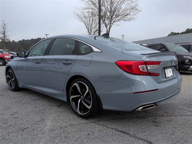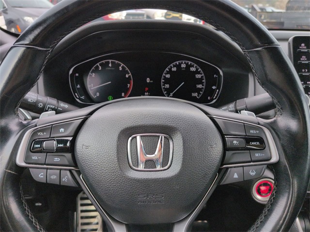 This 2021 Honda Accord Sport in Sonic Gray Pearl features: 4D Sedan, 1.5T I4 DOHC 16V Turbocharged VTEC, CVT, FWD, 4-Wheel Disc Brakes, 8 Speakers, 8" Color Touchscreen, ABS brakes, Adaptive Cruise Control, Adaptive Cruise Control: Adaptive Cruise Control (ACC) with Low-Speed Follow, Apple CarPlay/Android Auto, Auto Emergency Braking, Auto High-beam Headlights, Automatic temperature control, Backup Camera, Brake assist, Delay-off headlights, Driver Attention Warning, Electronic Stability Control, Emergency communication system: HondaLink, Exterior Parking Camera Rear, Forward collision: Collision Mitigation Braking System (CMBS) + FCW mitigation, Four wheel independent suspension, Foward Collison Alert, Front Bucket Seats, Front Center Armrest, Front dual zone A/C, Front fog lights, Fully automatic headlights, Illuminated entry, Lane Departure Warning System, Leather Shift Knob, Leather steering wheel, Low tire pressure warning, Outside temperature display, Overhead console, Panic alarm, Power door mirrors, Power driver seat, Power Mirror Package, Power Package, Power steering, Power windows, Radio data system, Radio: 180-Watt AM/FM Audio System, Rear seat center armrest, Remote keyless entry, Security system, Speed-sensing steering, Speed-Sensitive Wipers, Split folding rear seat, Spoiler, Sport Package, Steering wheel mounted audio controls, Telescoping steering wheel, Tilt steering wheel, Traction control, Trip computer, Variably intermittent wipers, Wheels: 19" Machine-Finished Alloy w/Black Inserts.