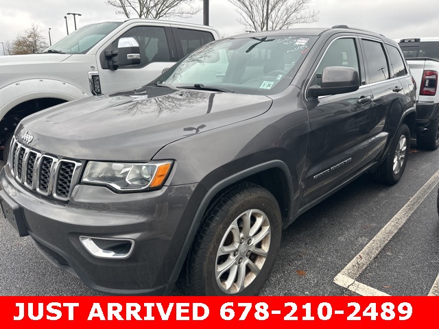 This 2021 Jeep Grand Cherokee Laredo E in Granite Crystal Metallic Clearcoat features: 4D Sport Utility, 3.6L V6 24V VVT, 8-Speed Automatic, 4WD, 4-Wheel Disc Brakes, ABS brakes, AM/FM radio: SiriusXM, Android Auto, Apple Carplay, Apple CarPlay/Android Auto, Automatic temperature control, Backup Camera, Blind Spot Monitoring, Bluetooth w/ Audio Streaming, Brake assist, Compass, Delay-off headlights, Electronic Stability Control, Four wheel independent suspension, Front Bucket Seats, Front Center Armrest w/Storage, Front dual zone A/C, Front fog lights, Fully automatic headlights, GPS Antenna Input, Heated door mirrors, Hill Start Assist, Illuminated entry, Integrated Voice Command w/Bluetooth, Leather Shift Knob, Low tire pressure warning, MOPAR Cargo Area Liner, MOPAR Interior Protection Group, MOPAR Slush Mats, Outside temperature display, Overhead console, Panic alarm, Parking Sensors, ParkView Rear Back-Up Camera, Power door mirrors, Power driver seat, Power Mirror Package, Power Package, Power steering, Power windows, Preferred Equipment Package, Push Button Start, Quick Order Package 2BE Laredo E, Radio data system, Radio: Uconnect 4 w/7" Display, Rear Cross Traffic Alert, Rear seat center armrest, Rear window wiper, Remote keyless entry, Reverse Brake Assist, Reverse Sensing, Roof rack: rails only, Safety Package, Speed control, Speed-sensing steering, Speed-Sensitive Wipers, Split folding rear seat, Spoiler, Steering Wheel Mounted Audio Controls, Steering wheel mounted audio controls, Telescoping steering wheel, Tilt steering wheel, Traction control, Trip computer, Wheels: 18" x 8.0" Fine Silver Aluminum.