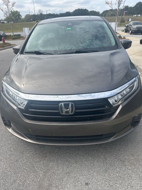 This 2022 Honda Odyssey EX-L in Pacific Pewter Metallic features: 18" Machine-Finished Alloy Wheels, 3rd row seats: split-bench, 4-Wheel Disc Brakes, 7 Speakers, ABS brakes, Adaptive Cruise Control, Adaptive Cruise Control: Adaptive Cruise Control (ACC) with Low-Speed Follow, Air Conditioning, AM/FM radio: SiriusXM, Android Auto, Apple Carplay, Apple CarPlay/Android Auto, Auto High-beam Headlights, Auto-dimming Rear-View mirror, Automatic temperature control, Backup Camera, Blind Spot Information (BSI) System warning, Bluetooth w/ Audio Streaming, Brake assist, Exterior Parking Camera Rear, Front Bucket Seats, Front dual zone A/C, Front fog lights, Hands Free Liftgate, Heated door mirrors, Heated Front Bucket Seats, Heated Seats, Leather Seat Trim, Leather Seats, Memory Package, Memory seat, Moonroof, Multi Zone Climate Control, Navigation System, Parking Sensors, Power door mirrors, Power driver seat, Power Liftgate, Power Mirror Package, Power moonroof, Power Package, Power windows, Premium Audio Package, Premium Package, Premium Sound Package, Push Button Start, Radio data system, Radio: 160-Watt AM/FM/HD/SiriusXM Audio System, Rear air conditioning, Remote keyless entry, Speed control, Sunroof/Moonroof, Telescoping steering wheel, Tilt steering wheel, Wireless Charging Pad.
