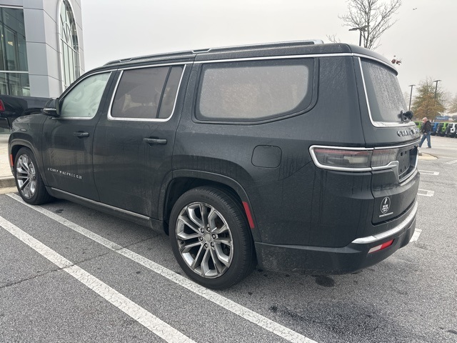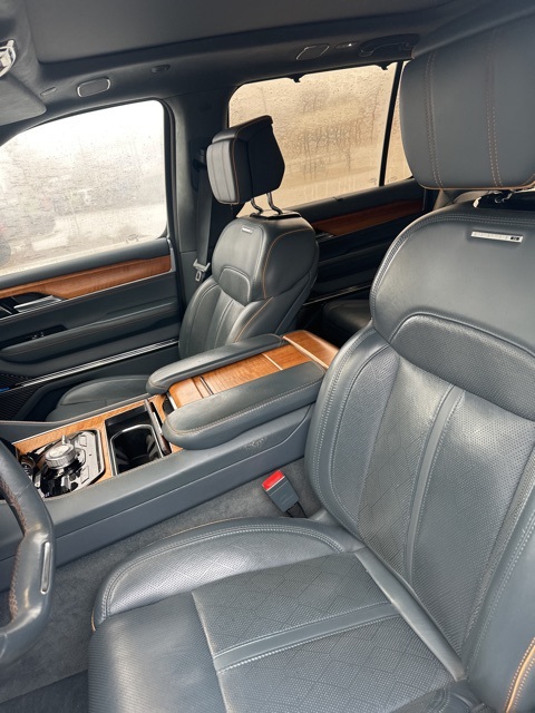 This 2022 Jeep Grand Wagoneer Series II in Diamond Black Crystal Pearlcoat features: 4D Sport Utility, 6.4L V8, 8-Speed Automatic, 4WD, 12" LCD Productivity Touchscreen, 23 Speaker McIntosh Reference Audio System, 360-Degree Camera, 3rd Row Seating, 3rd row seats: bench, 4-Wheel Disc Brakes, 4G WiFi Hotspot Telematics, ABS brakes, Active Park Assist, Adaptive Cruise Control, Adjustable pedals, Adjustable Roof Rail Crossbars, Android Auto, Apple Carplay, Audio memory, Auto Emergency Braking, Auto High-beam Headlights, Auto LED Headlights, Auto-dimming door mirrors, Auto-dimming Rear-View mirror, Auto-leveling suspension, Automatic temperature control, Backup Camera, Blind Spot Monitoring, Bluetooth w/ Audio Streaming, Brake assist, Cargo Cover, Cold Weather Package, Compass, Delay-off headlights, Driver Attention Warning, Electronic Stability Control, Four wheel independent suspension, Front & Rear Park Assist, Front Center Armrest w/Storage, Front Console Cooler, Front dual zone A/C, Front fog lights, Front Pedestrian Braking, Full Speed Auto Collision Warning Plus, Fully automatic headlights, Garage door transmitter, Genuine wood console insert, Genuine wood dashboard insert, Genuine wood door panel insert, Heads-Up Display, Heated door mirrors, Heated front seats, Heated rear seats, Heated steering wheel, Hill Start Assist, Illuminated entry, Lane Keeping System, Leather Seats, Leather steering wheel, Leather Trimmed Bucket Seats, LED Foglights, LED Projector Headlights, Low tire pressure warning, Memory Package, Memory seat, Multi Zone Climate Control, Navigation System, Outside temperature display, Overhead console, Panic alarm, Panoramic Sunroof/Moonroof, Parking Sensors, Power door mirrors, Power Liftgate, Power Mirror Package, Power moonroof, Power Package, Power passenger seat, Preferred Equipment Package, Premium Audio Package, Premium Group II, Premium Package, Premium Sound Package, Premium Tinted Glass, Quick Order Package 23S, Radio data system, Radio: Uconnect 5 Nav w/12.0" Display, Rain sensing wipers, Rear air conditioning, Rear Climate Package, Rear Cross Traffic Alert, Rear dual zone A/C, Rear seat center armrest, Rear window wiper, Remote keyless entry, Reverse Brake Assist, Reverse Sensing, Safety Package, Security system, Speed control, Speed-sensing steering, Speed-Sensitive Wipers, Split folding rear seat, Steering wheel memory, Steering wheel mounted audio controls, Telescoping steering wheel, Tilt steering wheel, Traction control, Trip computer, Turn signal indicator mirrors, Two Tone Paint Group, Ventilated front seats, Ventilated Rear Seats, Wheels: 22" x 9.0" Premium 2 Aluminum.