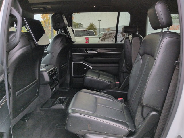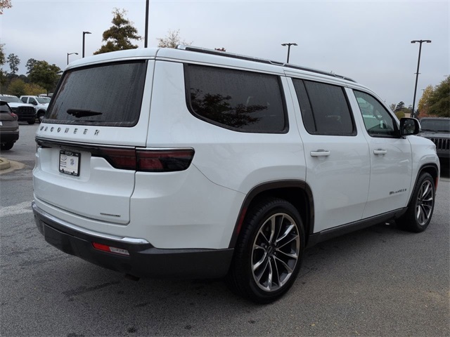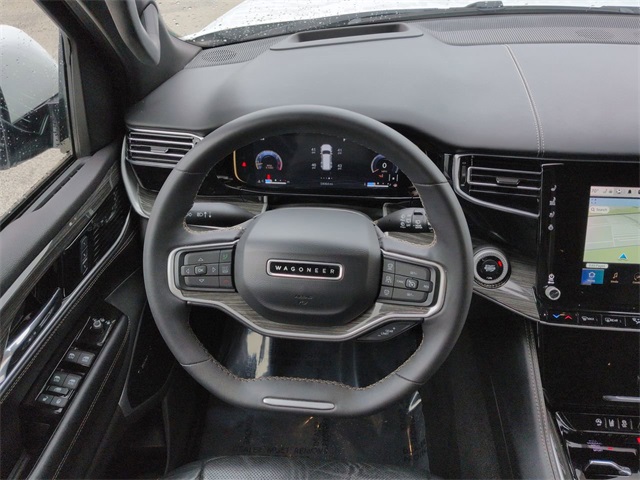 This 2022 Jeep Wagoneer Series III in Bright White Clearcoat features: 4D Sport Utility, 5.7L V8, 8-Speed Automatic, 4WD, 10.2" Digital Driver Cluster, 19 Speaker McIntosh Audio System, 3 Panel Sunroof, 3rd Row Seating, 3rd row seats: bench, 4-Wheel Disc Brakes, 7-Passenger Seating, ABS brakes, Adaptive Cruise Control, Adaptive Ride Package, Adaptive Suspension, Adjustable pedals, Adjustable Roof Rail Crossbars, Amazon Fire TV Built-In, Android Auto, Apple Carplay, Audio memory, Auto Emergency Braking, Auto High-beam Headlights, Auto LED Headlights, Auto-dimming door mirrors, Auto-dimming Rear-View mirror, Auto-leveling suspension, Automatic temperature control, Backup Camera, Blind Spot Monitoring, Bluetooth w/ Audio Streaming, Brake assist, Cargo Cover, Cold Weather Package, Compass, Delay-off headlights, DVD Entertainment Package, Electronic Stability Control, Exterior Parking Camera Rear, Flexible Seating Group, Floor Console w/Cupholder, Four wheel independent suspension, Front Center Armrest w/Storage, Front dual zone A/C, Front fog lights, Front Passenger Interactive Display, Front Pedestrian Braking, Full Speed Auto Collision Warning Plus, Fully automatic headlights, Garage door transmitter, Genuine wood console insert, Genuine wood dashboard insert, Genuine wood door panel insert, Heads-Up Display, Heated door mirrors, Heated front seats, Heated rear seats, Heated steering wheel, Hill Descent Control, Illuminated entry, Lane Keeping System, Leather Seats, Leather Trimmed Bucket Seats, Low tire pressure warning, Luxury Front & Rear Floor Mats, Memory seat, Multi Zone Climate Control, Navigation System, Outside temperature display, Overhead console, Panic alarm, Panoramic Sunroof/Moonroof, Pedal memory, Power Deployable Running Boards, Power door mirrors, Power Liftgate, Power Mirror Package, Power Package, Power Running Boards, Power Tip/Slide Recline 2nd Row Buckets, Preferred Equipment Package, Premium Group I (DISC), Push Button Start, Quick Order Package 22N, Radio data system, Radio: Uconnect 5 Nav w/10.1" Display, Rain sensing wipers, Rear air conditioning, Rear Climate Package, Rear Cross Traffic Alert, Rear dual zone A/C, Rear seat center armrest, Rear Seat Video Group 1, Rear window wiper, Reclining 3rd row seat, Remote keyless entry, Remote Start, Reverse Brake Assist, Reverse Sensing, Reversible Carpet/Vinyl Cargo Mat, Safety Package, Seatback Video Screens, Security system, Speed control, Speed-sensing steering, Speed-Sensitive Wipers, Split folding rear seat, Steering wheel memory, Steering wheel mounted audio controls, Telescoping steering wheel, Tilt steering wheel, Traction control, Trip computer, Turn signal indicator mirrors, Ventilated front seats, Video USB Port, Wheels: 22" x 9.0" Premium 3 Aluminum (DISC), Wireless Charging Pad.