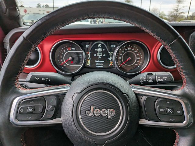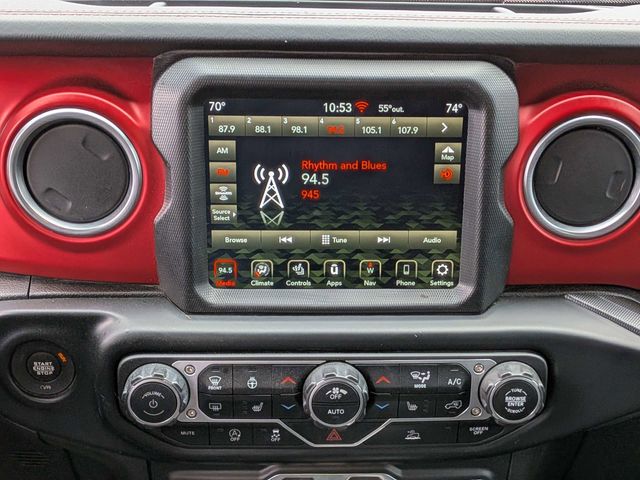 The Wrangler Unlimited Rubicon also comes equipped with a range of premium features, including a heated steering wheel, heated front seats, a trailer tow package, and a premium audio system with 9 speakers. This vehicle's bold and distinctive Tuscadero Pearlcoat exterior color is sure to turn heads wherever you go.