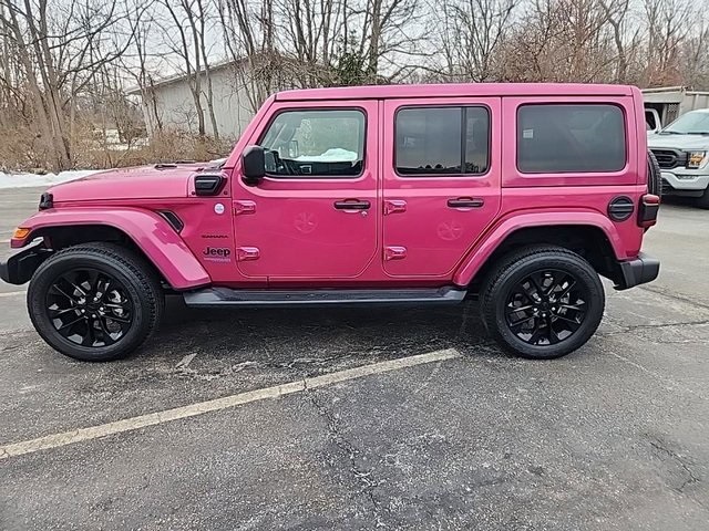This 2022 Jeep Wrangler Unlimited Sahara 4xe in Limited Edition Tuscadero Pearlcoat features: 8" Color Touchscreen, Active Park Assist, Adaptive Cruise Control w/Stop, Advanced Brake Assist, Advanced Safety Group, Air Conditioning, Aluminum Wheels, Android Auto, Apple Carplay, Apple CarPlay/Android Auto, Auto High Beam Headlamp Control, Backup Camera, Blind Spot & Cross Path Detection, Blind Spot Monitoring, Bluetooth, Cold Weather Group, Cold Weather Package, Full Speed Auto Collision Warning Plus, Full Speed Forward Collision Warning Plus, Heated Front Seats, Heated Seats, Heated Steering Wheel, Navigation System, ParkSense Rear Park Assist System, Power windows, Quick Order Package 29P, Remote keyless entry, Remote Start, Remote Start System, Removable Rear Quarter Windows, Safety Group, Safety Package, Sky One Touch Top, Wheels: 20" x 8" Fully Painted Aluminum.
