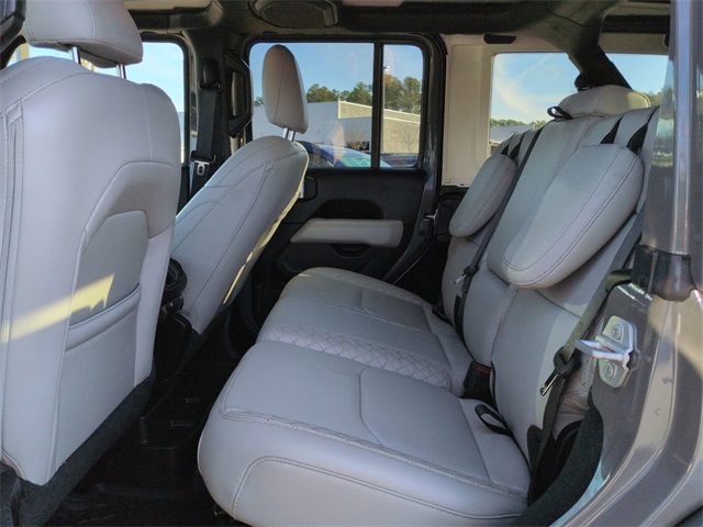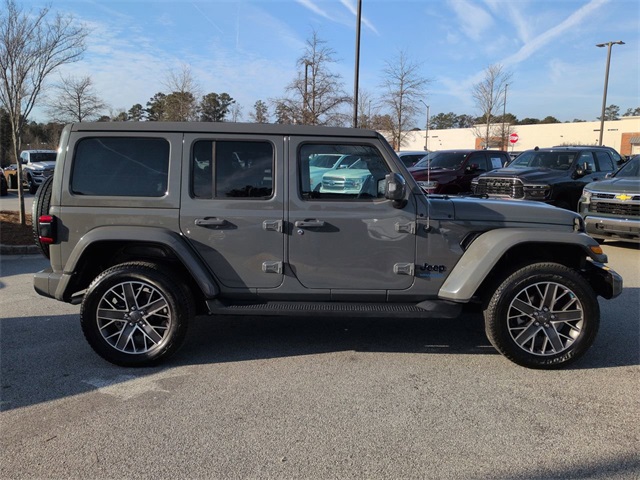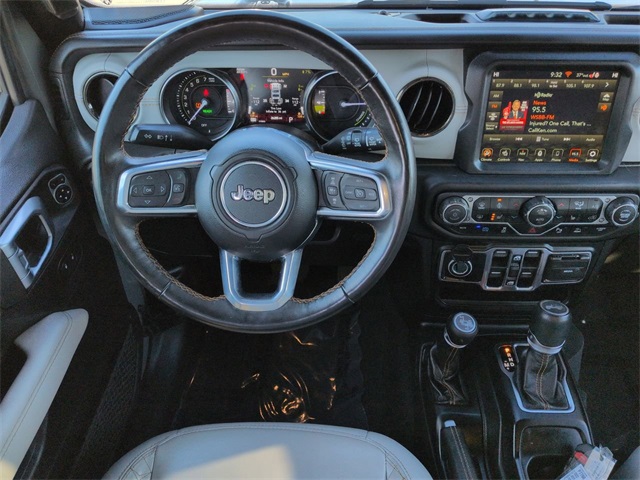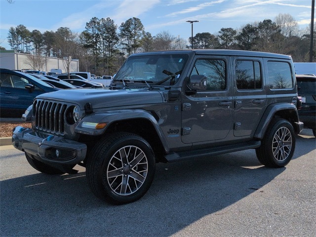 This 2022 Jeep Wrangler Unlimited Sahara High Altitude 4xe in Sting-Gray Clearcoat features: 8" Color Touchscreen, Adaptive Cruise Control, Adaptive Cruise Control w/Stop, Advanced Brake Assist, Advanced Safety Group, Advanced Safety Group, Air Conditioning, Aluminum Wheels, Android Auto, Apple Carplay, Apple CarPlay/Android Auto, Auto High Beam Headlamp Control, Auto LED Headlights, Blind Spot & Cross Path Detection, Blind Spot Monitoring, Body Color 3-Piece Hard Top, Body Color Door Handles, Body Color Front Bumper, Body Color Grille w/Gloss Black Rings, Body Color Power Locking Fuel Filler Door, Body Color Rear Bumper w/Step Pads, Cold Weather Group, Cold Weather Package, Exterior Mirrors w/Supplemental Signals, Foward Collison Alert, Freedom Panel Storage Bag, Front Bucket Seats, Front dual zone A/C, Front fog lights, Full Speed Forward Collision Warning Plus, Fully automatic headlights, Heated door mirrors, Heated Front Seats, Heated Seats, Heated Steering Wheel, High Altitude Package, Leather Seats, Leather steering wheel, Leather Trimmed Bucket Seats, LED Foglights, LED Projector Headlights, MOPAR Hinge-Gate Reinforcement, Navigation System, ParkSense Rear Park Assist System, ParkView Rear Back-Up Camera, Power door mirrors, Power Mirror Package, Power windows, Premium Audio Package, Premium Dark Exterior Accents, Premium McKinley Trimmed Seats, Quick Order Package 29N High Altitude, Radio: Uconnect 4C Nav w/8.4" Display, Rear Window Defroster, Rear Window Wiper/Washer, Remote keyless entry, Remote Start System, Safety Group, Safety Package, Sky One Touch Power Top, Speed control, Summit Badging, Wheels: 20" x 8.0" Fully Painted Aluminum, Wrapped I/P Bezel w/Caramel Stitch.