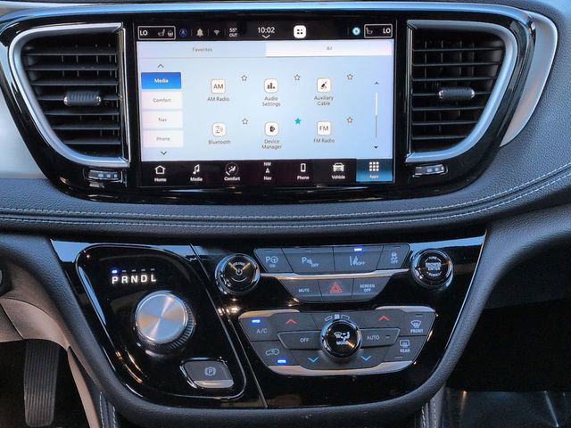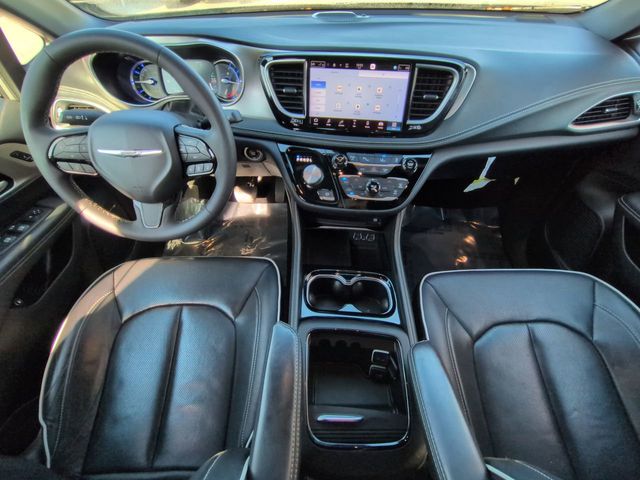 This 2023 Chrysler Pacifica Hybrid Limited in Ceramic Gray Clearcoat features: 4D Passenger Van, 3.6L V6, CVT, FWD, 10.1" Portriat Touchscreen, 115V Auxiliary Power Outlet, 13 Speakers, 20 harman/kardon Speakers, 2nd & 3rd Row Window Shades, 3-Channel Video Remote Control, 360 Surround View Camera System, 360-Degree Camera, 3rd Row Seating, 3rd row seats: split-bench, 4-Wheel Disc Brakes, 4G WiFi Hotspot Telematics, 760 Watt Amplifier, ABS brakes, Amazon Fire TV Built-In, Anodized Ink Badging, Apple CarPlay/Android Auto, Audio memory, Auto-Dimming Rear-View Mirror, Auto-dimming Rear-View mirror, Automatic temperature control, Backup Camera, Black Day Light Opening Moldings, Blind Spot Monitoring, Body Color Door Handles, Brake assist, Cold Weather Package, Delay-off headlights, Driver's Seat Mounted Armrest, DVD Entertainment Package, Electronic Stability Control, Emergency communication system: Uconnect Access, Exterior Parking Camera Rear, FamCAM Interior Camera, Four wheel independent suspension, Front dual zone A/C, Front Fascia Air Deflectors, Front fog lights, Front Pedestrian Braking, Full Speed Auto Collision Warning Plus, Fully automatic headlights, Garage door transmitter, Gloss Black Exterior Mirrors, Hands Free Sliding Doors, Heated door mirrors, Heated front seats, Heated steering wheel, Heavy Duty Suspension, High Definition Multimedia Interface, Illuminated entry, Integrated Active Noise Cancellation, KeySense, Lane Departure Warning, Leather Seats, Limited Package, Low tire pressure warning, Memory Package, Memory seat, Multi Zone Climate Control, Multimedia Package, Nappa Leather Bucket Seats w/S Logo, Navigation System, Outside temperature display, Overhead console, Panic alarm, Panoramic Sunroof/Moonroof, Parallel & Perpendicular Park Assist w/Stop, Parallel and Perpendicular ParkAssist with Stop, Parking Sensors, ParkSense Front/Rear Park Assist w/Stop, Passenger seat mounted armrest, Piano Black Interior Accents, Power door mirrors, Power Liftgate, Power Mirror Package, Power moonroof, Power Package, Power Sliding Doors, Preferred Equipment Package, Premium Audio Package, Premium Fascia Upper/Lower Grille w/Black Surround, Premium Rear Fascia Black, Premium Sound Package, Quick Order Package 2EP, Radio data system, Radio: Uconnect 5 Nav w/10.1" Display, Rain sensing wipers, Rear air conditioning, Rear Climate Package, Rear Cross Traffic Alert, Rear window wiper, Reclining 3rd row seat, Remote keyless entry, Reverse Brake Assist, Reverse Sensing, S Appearance Package, S Badge, Safety Package, Safety Sphere, Seatback Video Screens, Security system, Split folding rear seat, Spoiler, Steering wheel mounted audio controls, Telescoping steering wheel, Tilt steering wheel, Traction control, Trip computer, Turn signal indicator mirrors, Uconnect Theater Family Group, Ventilated front seats, Video USB Port, Wheels: 18" x 7.5" S-Model Aluminum Design 3, Wireless Charging Pad.