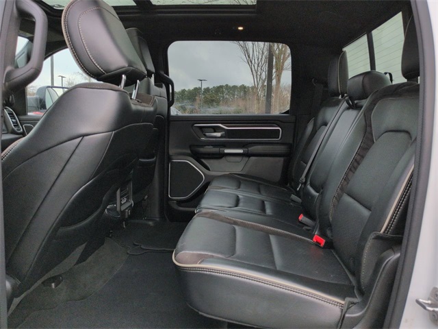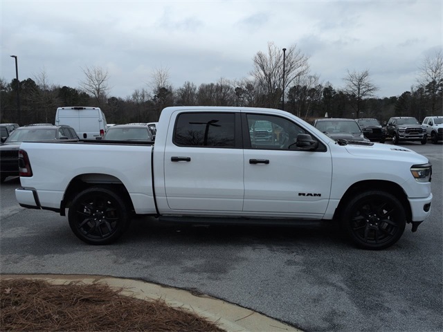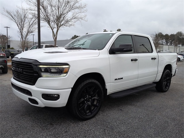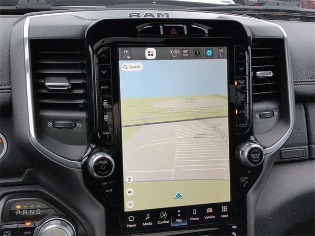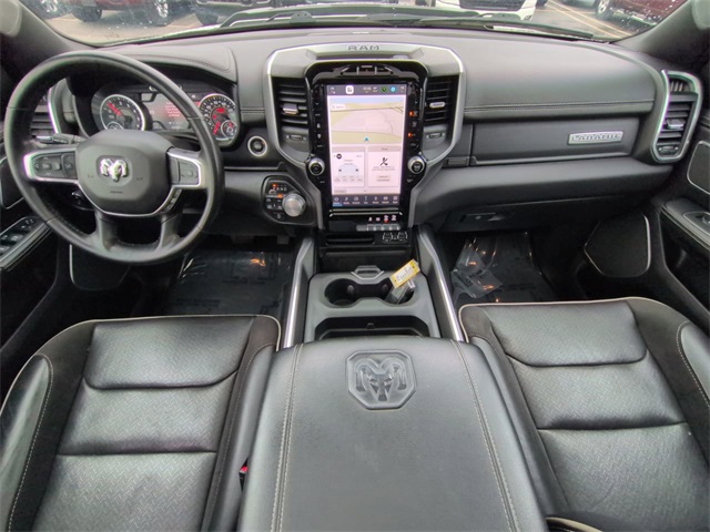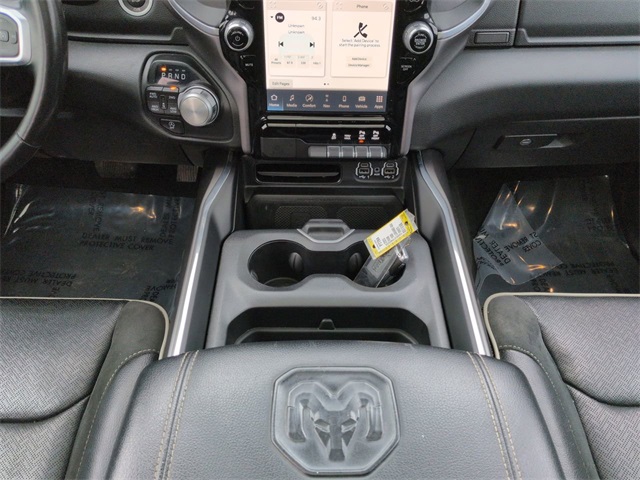 This 2023 Ram 1500 Laramie in Bright White Clearcoat features: 4D Crew Cab, HEMI 5.7L V8 Multi Displacement VVT eTorque, 8-Speed Automatic, 4WD, #1 Seat Foam Cushion, 10 Speakers, 12" LCD Productivity Touchscreen, 12" Touchscreen Display, 2nd Row In Floor Storage Bins, 3 Rear Seat Head Restraints, 4 Way Front Headrests, 4-Wheel Disc Brakes, 4G LTE Wi-Fi Hot Spot, 4G WiFi Hotspot Telematics, ABS brakes, Accent Color Door Handles, Accent Color Premium Power Mirrors, Adjustable pedals, Android Auto, Apple CarPlay, Apple Carplay, Apple CarPlay/Android Auto, Audio memory, Auto High Beam Headlamp Control, Auto LED Headlights, Auto-dimming door mirrors, Auto-Dimming Exterior Driver Mirror, Auto-dimming Rear-View mirror, Automatic temperature control, Backup Camera, Black Exterior Truck Badging, Black Headlamp Bezels, Black Interior Accents, Black Painted Exterior Mirrors Caps, Blind Spot & Cross Path Detection, Blind Spot Monitoring, Bluetooth w/ Audio Streaming, Body Color Front Bumper, Body Color Rear Bumper w/Step Pads, Brake assist, Bucket Seats, Center Console Parts Module, Cold Weather Package, Connected Travel & Traffic Services, Connectivity - US/Canada, Convex Wide-Angle Exterior Mirror Insert, Delay-off headlights, Disassociated Touchscreen Display, Dome Dual LED Reading Lamp, Driver Seat Memory, Dual Exhaust w/Black Tips, Dual-Pane Panoramic Sunroof, Electric Shift-On-Demand Transfer Case, Electronic Stability Control, Exterior Mirrors Courtesy Lamps, Exterior Mirrors w/Heating Element, Exterior Mirrors w/Memory, Exterior Mirrors w/Supplemental Signals, Foam Bottle Insert (Door Trim Panel), For Details, Visit DriveUconnect.com, For More Info, Call 800-643-2112, Front & Rear Park Assist, Front Center Armrest w/Storage, Front Door Accent Lighting, Front dual zone A/C, Front fog lights, Front LED Fog Lamps, Front Pedestrian Braking, Front Seat Back Map Pockets, Front wheel independent suspension, Full Length Upgraded Floor Console, Full Speed Auto Collision Warning Plus, Fully automatic headlights, Garage door transmitter, Global Telematics Box Module (TBM), Google Android Auto, GPS Antenna Input, GPS Navigation, Grille Surround 3 Black Texture 2 Black, harman/kardon 19 Speaker Premium Sound, HD Radio, Heated Front Seats, Heated Steering Wheel, Heated steering wheel, Illuminated entry, Integrated Center Stack Radio, Integrated Voice Command w/Bluetooth, Laramie Level B Equipment Group, Leather Trim 40/20/40 Bench Seat, Leather Trimmed Bucket Seats, LED Dome/Reading Lamp, LED Reflector Headlamps, Low tire pressure warning, Memory seat, Navigation System, Night Edition, Outside temperature display, Overhead console, Panic alarm, Panoramic Sunroof/Moonroof, Parking Sensors, ParkSense Front/Rear Park Assist w/Stop, ParkSense Front/Rear Park Assist w/Stop (DISC), ParkView Rear Back-Up Camera, Pedal memory, Power 2-Way Driver Lumbar Adjust, Power 2-Way Passenger Lumbar Adjust, Power 8-Way Driver & Passenger Seats, Power door mirrors, Power Mirror Package, Power Package, Power Sliding Rear Window, Power-Folding Mirrors, Preferred Equipment Package, Premium Audio Package, Premium Sound Package, Push Button Start, Quick Order Package 27H Laramie, Radio: Uconnect 5 Nav w/12.0" Display, Rain Sensitive Windshield Wipers, RAM Grille Badge - Black, Rear 60/40 Folding Seat, Rear Cross Traffic Alert, Rear Door Accent Lighting, Rear Extra HD Shock Absorbers, Rear Power Sliding Window, Rear seat center armrest, Rear step bumper, Rear Underseat Compartment Storage, Rear Window Defroster, Remote keyless entry, Remote Start, Remote Tailgate Release, Reverse Brake Assist, Reverse Sensing, Safety Package, Security system, SiriusXM w/360L, Speed control, Split folding rear seat, Sport Performance Hood, Steering wheel mounted audio controls, Telescoping steering wheel, Tilt steering whe