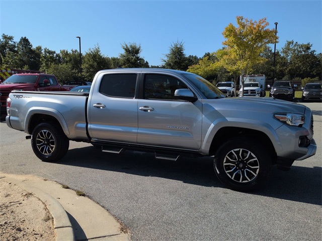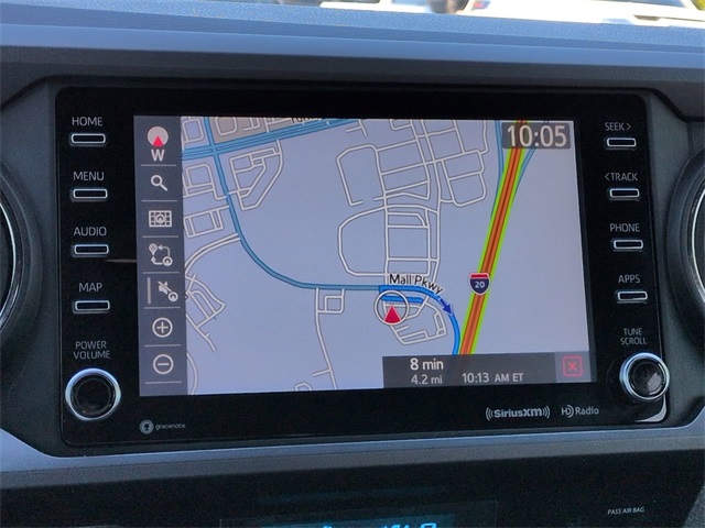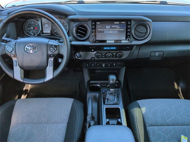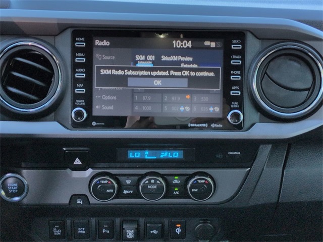 This 2023 Toyota Tacoma TRD Sport in Celestial Silver Metallic features: 4D Double Cab, 3.5L V6, 6-Speed Automatic, RWD, **LOCAL TRADE**, 120V/400W Deck Mounted AC Power, 17" Machined Alloy Wheels, 360-Degree Camera, 4G WiFi Hotspot Telematics, 8" Color Touchscreen, ABS brakes, Adaptive Cruise Control, Advanced Technology Package, AM/FM radio: SiriusXM, Android Auto, Apple Carplay, Apple CarPlay/Android Auto, Auto High-beam Headlights, Auto-dimming Rear-View mirror, Automatic temperature control, Backup Camera, Blind Spot Monitoring, Bluetooth w/ Audio Streaming, Brake assist, Electronic Stability Control, Emergency communication system: Safety Connect (1-year trial), Exterior Parking Camera Rear, Front Bucket Seats, Front Center Armrest, Front fog lights, Front Pedestrian Braking, Front wheel independent suspension, Heated door mirrors, Illuminated entry, Lane Departure Warning, Low tire pressure warning, Navigation System, Outside temperature display, Overhead console, Panic alarm, Panoramic View Monitor w/Camera, Parking Sensors, Power door mirrors, Power driver seat, Power Mirror Package, Power Package, Power steering, Power windows, Pre-Collision w/ Pedestrian Detection, Radio: Audio, Rear Parking Assist Sonar, Rear step bumper, Remote keyless entry, Reverse Brake Assist, Reverse Sensing, Security system, Speed-sensing steering, Split folding rear seat, Sport Package, Steering wheel mounted audio controls, Telescoping steering wheel, Tilt steering wheel, Tow Package, Toyota Safety Sense, Traction control, Trailer Package, TRD Package, Trip computer, Variably intermittent wipers, WiFi Hotspot Capable, Wireless Charging Pad.