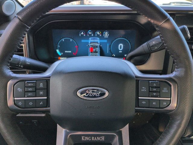 This 2024 Ford F-350SD King Ranch in Bronze features: 12" LCD Productivity Touchscreen, 2KW Pro Power Onboard, 360-Degree Camera, 5G WiFi Hotspot Telematics, Adjustable pedals, Air Conditioning, Auto High-beam Headlights, Auto-dimming Rear-View mirror, B&O Sound System, Electronic Stability Control, Engine Block Heater, Front Bucket Seats, Front dual zone A/C, Front fog lights, Fully automatic headlights, FX PAckage, FX4 Off-Road Package, Garage door transmitter, Head-Up Display, Heated door mirrors, Heated front seats, Heated rear seats, Heated steering wheel, Hill Descent Control, Keyless Pad, Leather steering wheel, LED Projector Headlights, Memory seat, Off-Road Specifically Tuned Shock Absorbers, Package 710A, Pickup Box, Power door mirrors, Power driver seat, Power Mirror Package, Power Package, Power passenger seat, Power Running Boards, Power steering, Power Tailgate, Power windows, Push Button Start, Radio: B&O Unleashed Sound System by Bang & Olufsen, Rapid-Heat Supplemental Cab Heater, Rear step bumper, Rear window defroster, Remote keyless entry, SiriusXM Radio w/360L, Speed control, Steering wheel mounted audio controls, SYNC 4 w/Enhanced Voice Recognition, Telescoping steering wheel, Tilt steering wheel, Trailer Brake Control, Unique FX4 Off-Road Box Decal, Ventilated front seats, Wireless Charging Pad.