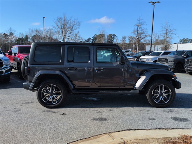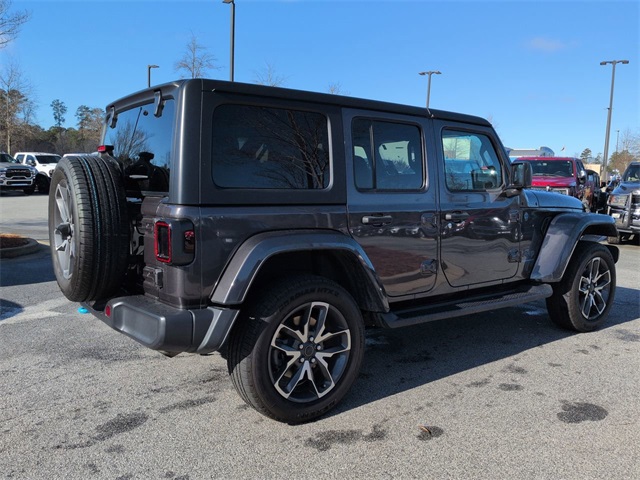 This 2024 Jeep Wrangler Sport S 4xe in Granite Crystal Metallic Clearcoat features: 4D Sport Utility, 2.0L I4 DOHC, 8-Speed Automatic, 4WD, 3rd Generation Heavy-Duty Dana 44 Axles, 4-Wheel Disc Brakes, 4G WiFi Hotspot Telematics, 8 Speakers, ABS brakes, Adaptive Cruise Control, Apple CarPlay/Android Auto, Automatic temperature control, Backup Camera, Black 3-Piece Hard Top, Brake assist, Compass, Delay-off headlights, Electronic Stability Control, Freedom Panel Storage Bag, Front Bucket Seats, Front Center Armrest w/Storage, Front dual zone A/C, Front fog lights, Front Pedestrian Braking, Full Speed Auto Collision Warning Plus, Fully automatic headlights, Heated door mirrors, Illuminated entry, Integrated roll-over protection, Low tire pressure warning, No Soft Top, Outside temperature display, Panic alarm, ParkView Rear Back-Up Camera, Power door mirrors, Power steering, Power windows, Preferred Equipment Package, Quick Order Package 29U Sport S, Radio data system, Radio: Uconnect 5 w/12.3" Display, Rear Window Defroster, Rear Window Wiper/Washer, Remote keyless entry, Security system, Split folding rear seat, Sport Suspension, Steering wheel mounted audio controls, Telescoping steering wheel, Tilt steering wheel, Traction control, Trip computer, Variably intermittent wipers, Wheels: 20" x 8" Machined/Painted Gray.