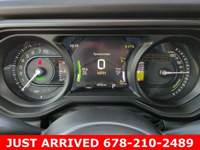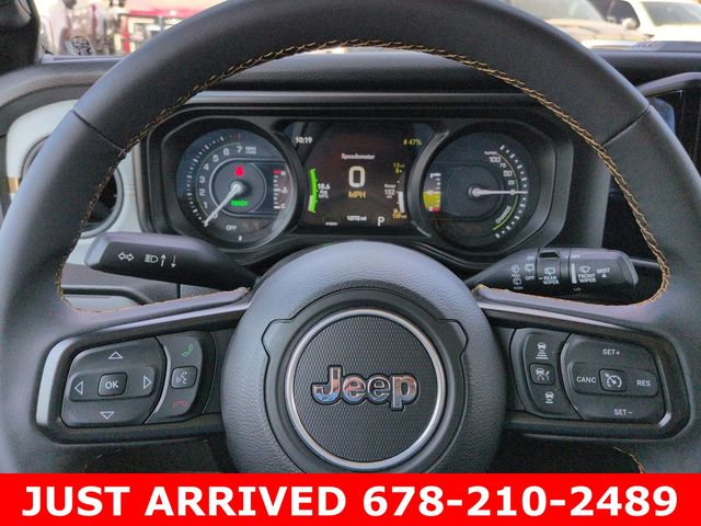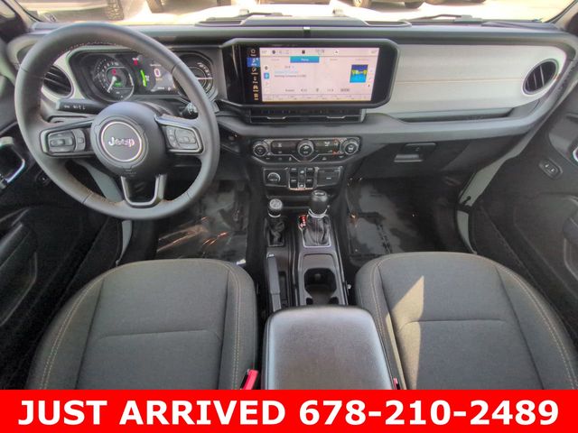 Step inside and you'll be greeted by a spacious and well-appointed cabin, featuring 8 speakers, a Uconnect 5 infotainment system with a 12.3" display, and dual-zone automatic climate control. The Wrangler Sport S 4xe also offers the convenience of remote keyless entry, power windows, and steering wheel-mounted audio controls.