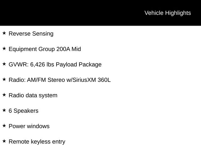 - Radio: AM/FM Stereo w/SiriusXM 360L