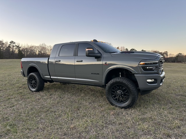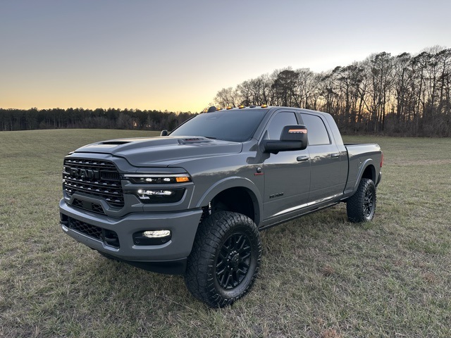 This 2026 Ram 3500 Limited in Ceramic Gray Clearcoat features: 4D Mega Cab, 6.7L I6, 8-Speed Automatic, 4WD, 17 Speakers, 4 INCH BDS LIFT WITH FOX SHOCKS 37 INCH NITTO RIDGEGRAPPLERS, 4-Wheel Disc Brakes, 5th Wheel/Gooseneck Towing Prep Group, 6,000 lbs Front Axle with Hub Extension, ABS brakes, Active Lane Management System, Adaptive Cruise Control, Adaptive Steering, Adaptive Steering System, Adjustable pedals, AM/FM radio: SiriusXM with 360L, Android Auto, Apple CarPlay/Android Auto, Audio Package, Auto High-beam Headlights, Auto-dimming door mirrors, Auto-dimming Rear-View mirror, Automatic temperature control, Backup Camera, Black Exterior Truck Badging, Black Grille Limited, Black Wheel Center Hub, Blind Spot Monitoring, Bluetooth w/ Audio Streaming, Body Color Grille Surround, Box and Rear Fender Clearance Lamps, Brake assist, Center Stop Lamp with Cargo View Camera, Clearance Lamps, Cold Weather Group, Cold Weather Package, Compass, Dash Pass Thru Wire Circuits, Delay-off headlights, Digital Rearview Mirror, Driver Attention Warning, Drowsy Driver Detection, Electronic Stability Control, Engine Block Heater, Front & Rear Park Assist, Front Center Armrest w/Storage, Front dual zone A/C, Front fog lights, Front Pedestrian Braking, Full Speed Auto Collision Warning Plus, Fully automatic headlights, Garage door transmitter, Genuine wood console insert, Genuine wood dashboard insert, Genuine wood door panel insert, harman/kardon Speakers, Heated door mirrors, Heated front seats, Heated rear seats, Heated steering wheel, Illuminated entry, Instrument Panel Mounted Auxiliary Switches, Lane Departure Warning, Lane Keeping System, Leather Seats, Leather steering wheel, LED Bed Lighting, Limited Level 1 Equipment Group, Limited Package, Low tire pressure warning, Memory seat, MOPAR Spray in Bedliner, MOPAR Winter Front Grille Cover, Navigation System, Night Edition, Outside temperature display, Overhead console, Panic alarm, Parking Sensors, ParkView Rear Back-Up Camera, Pedal memory, Pickup Box, Power Deployable Running Boards, Power driver seat, Power Mirror Package, Power Package, Power passenger seat, Power Running Boards, Power steering, Power Sunroof, Power windows, Preferred Equipment Package, Premium Audio Package, Premium Sound Package, Push Button Start, Quick Order Package 24M Limited, Radio: Uconnect 5 Nav with 14.4" Display, Rain sensing wipers, Rear Cross Traffic Alert, Rear seat center armrest, Rear step bumper, Remote keyless entry, Remote Start, Reverse Brake Assist, Reverse Sensing, Safety Package, Security system, Speed control, Split folding rear seat, Sport Performance Hood, Steering wheel mounted audio controls, Sunroof/Moonroof, Surround View Camera System, Tilt steering wheel, Traction control, Traffic Sign Recognition, Traffic Sign Recognition, Trailer Reverse Guidance, Trailer Tire Pressure Monitoring System, Trip computer, Turn signal indicator mirrors, Ultra Premium Leather Seats, Vendor Painted Cargo Box, Vendor Painted Cargo Box Tracking, Ventilated front seats, Wheels: 20" x 8" Night Edition Black Aluminum, Wireless Charging Pad.